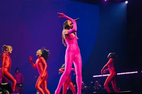 The energy never dips, but it somehow finds another level during a mashup of 'One Kiss' and 'Electricity' that looks like the coolest school disco around, complete with balloon drop. By the end of the tracks, Dua and her dancers are skipping in a circle, hand in hand.
