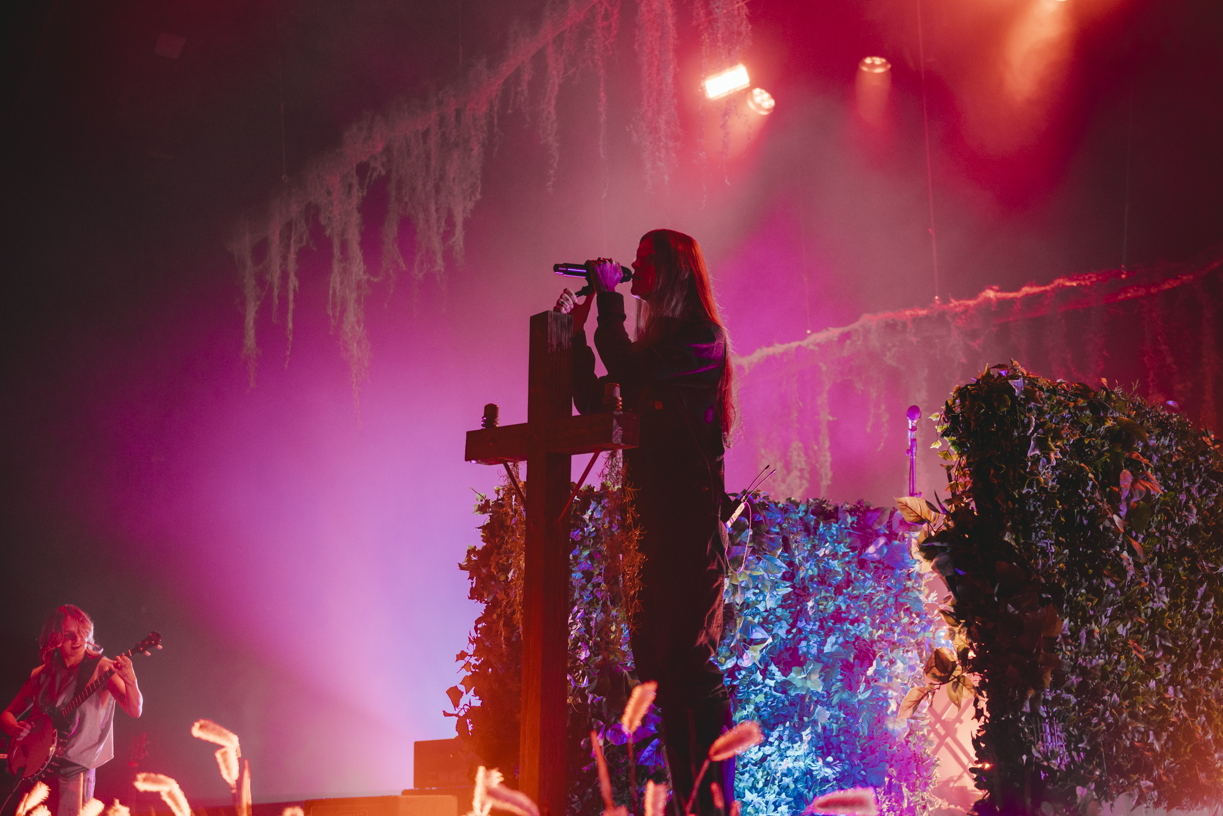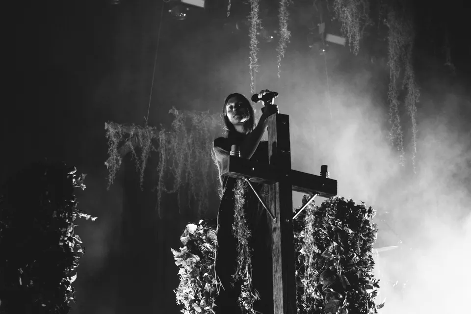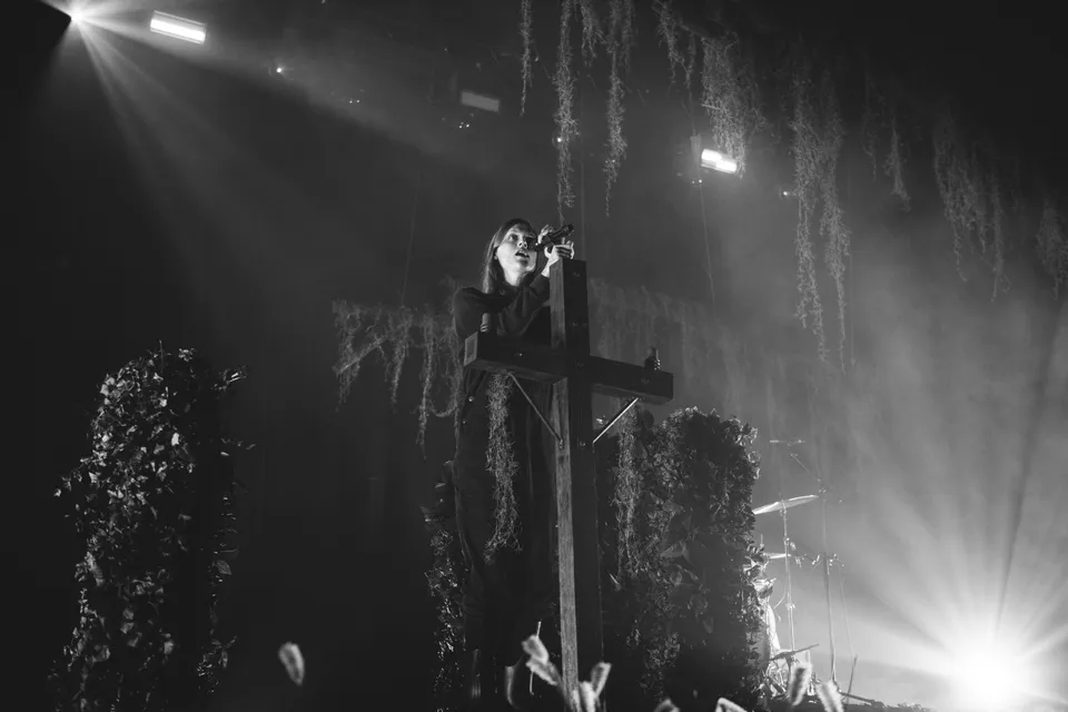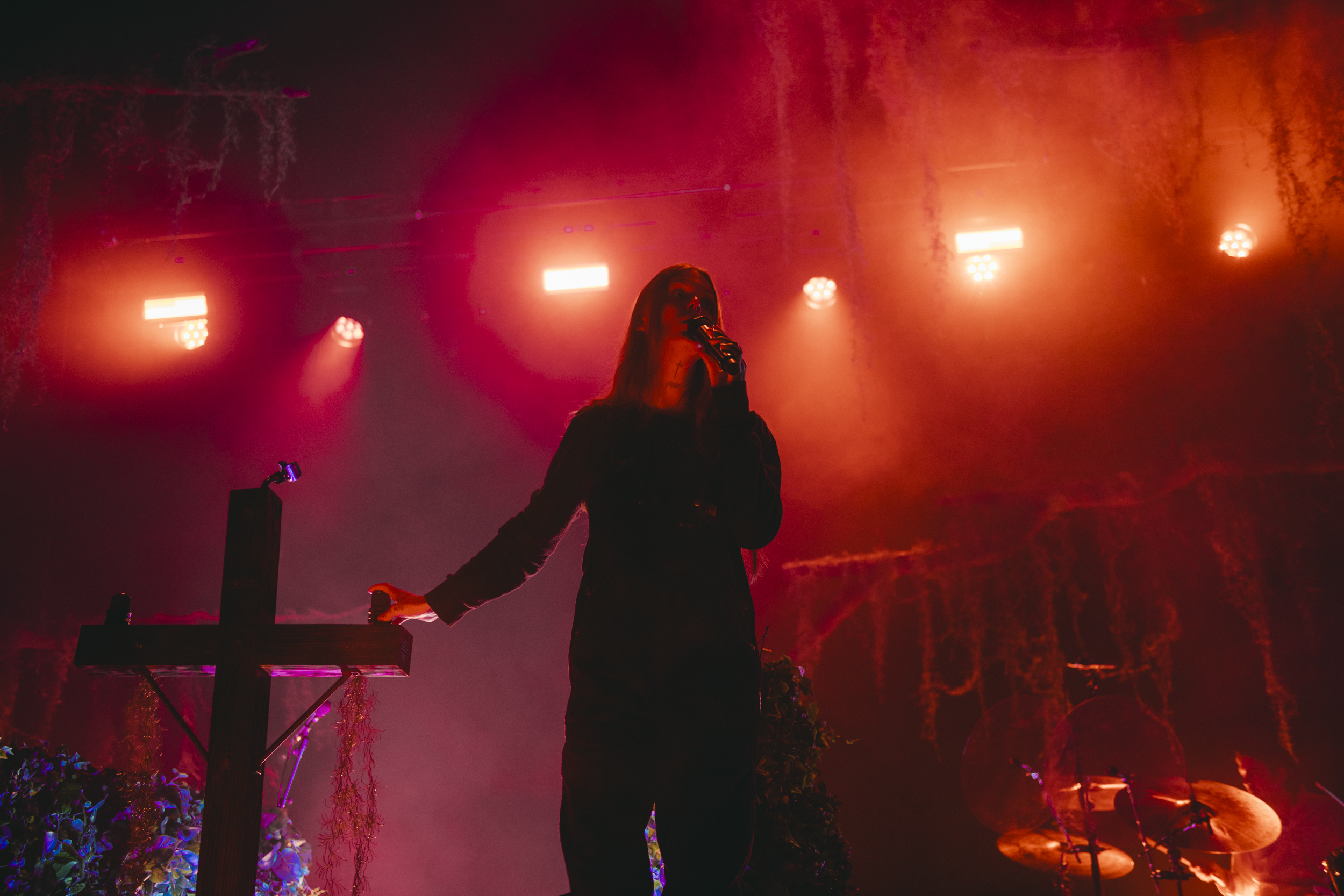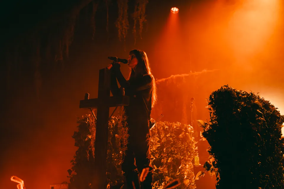 She hasn’t just entered pop’s mansion, she’s knocked down the walls and rebuilt it from the ground up. From the swirling intro of ‘Willoughby’s Theme’, the atmosphere is fully controlled. Darkness, smoke and sharp light wrap around the crowd as she opens with the pounding ‘Fuck Me Eyes’, met with screams so loud it feels like the walls could crack. ‘Nettles’ is panoramic and spellbinding, everyone locked in, wide-eyed and breathless.