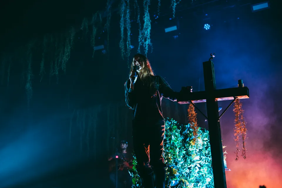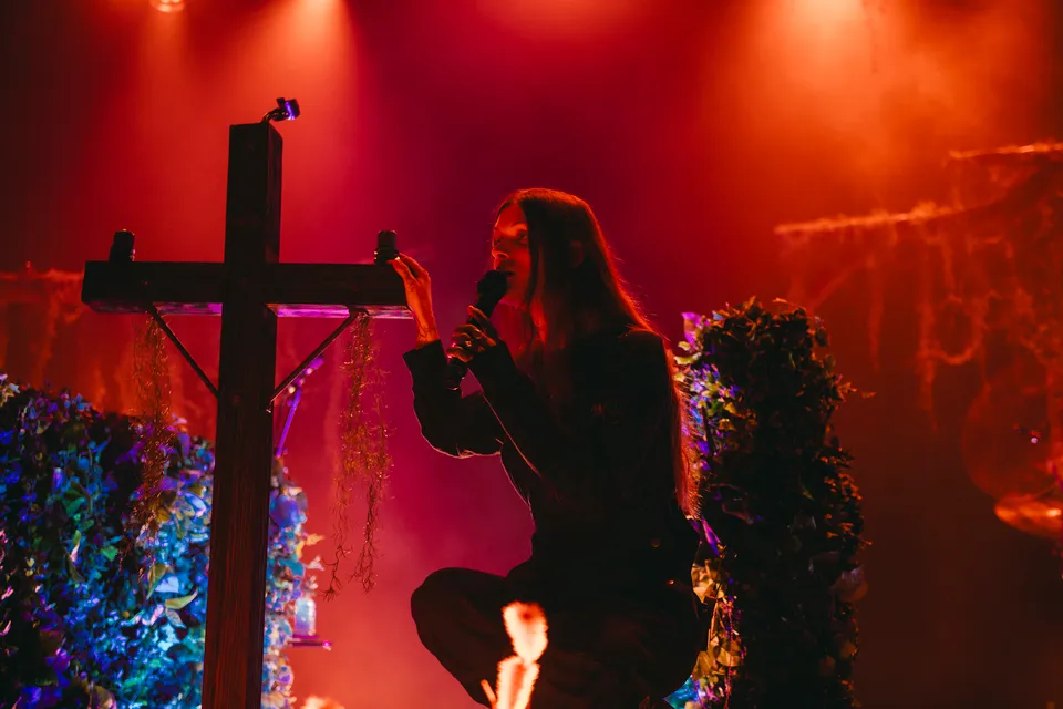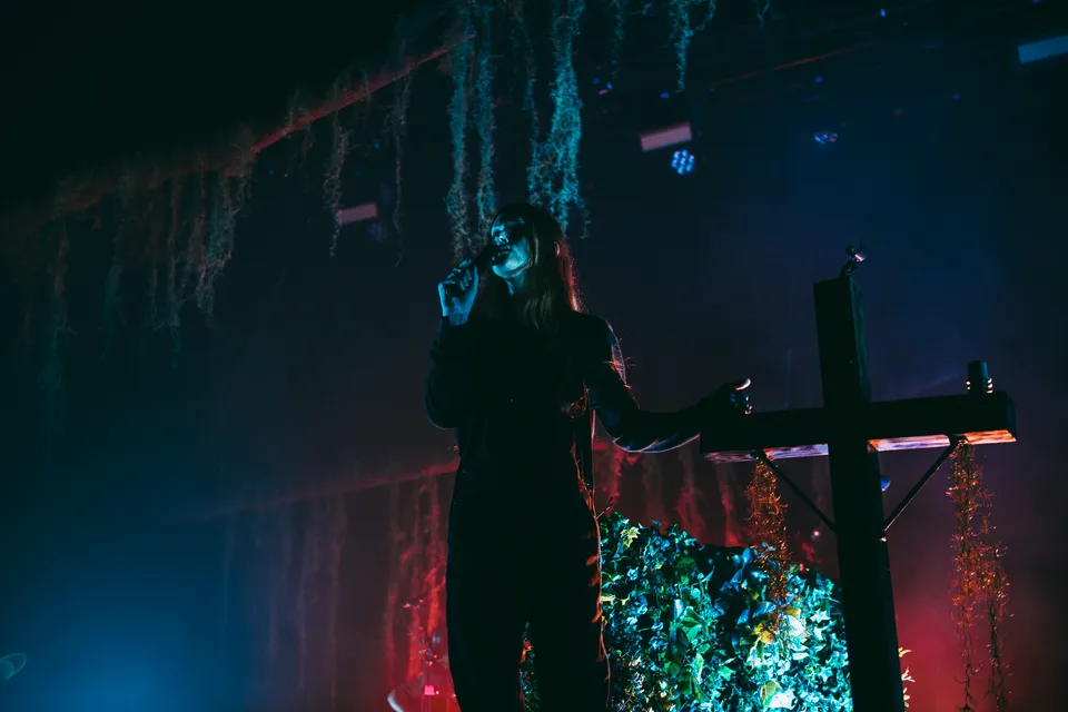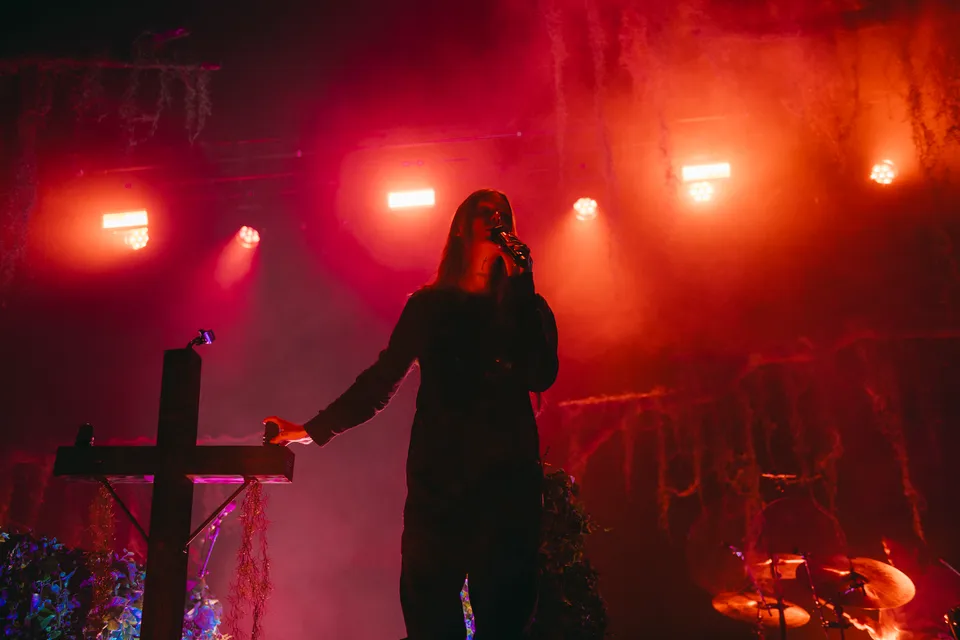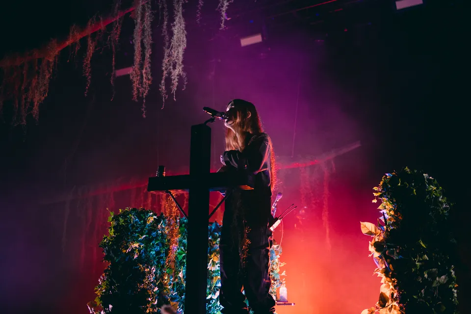 She hasn’t just entered pop’s mansion, she’s knocked down the walls and rebuilt it from the ground up. From the swirling intro of ‘Willoughby’s Theme’, the atmosphere is fully controlled. Darkness, smoke and sharp light wrap around the crowd as she opens with the pounding ‘Fuck Me Eyes’, met with screams so loud it feels like the walls could crack. ‘Nettles’ is panoramic and spellbinding, everyone locked in, wide-eyed and breathless.