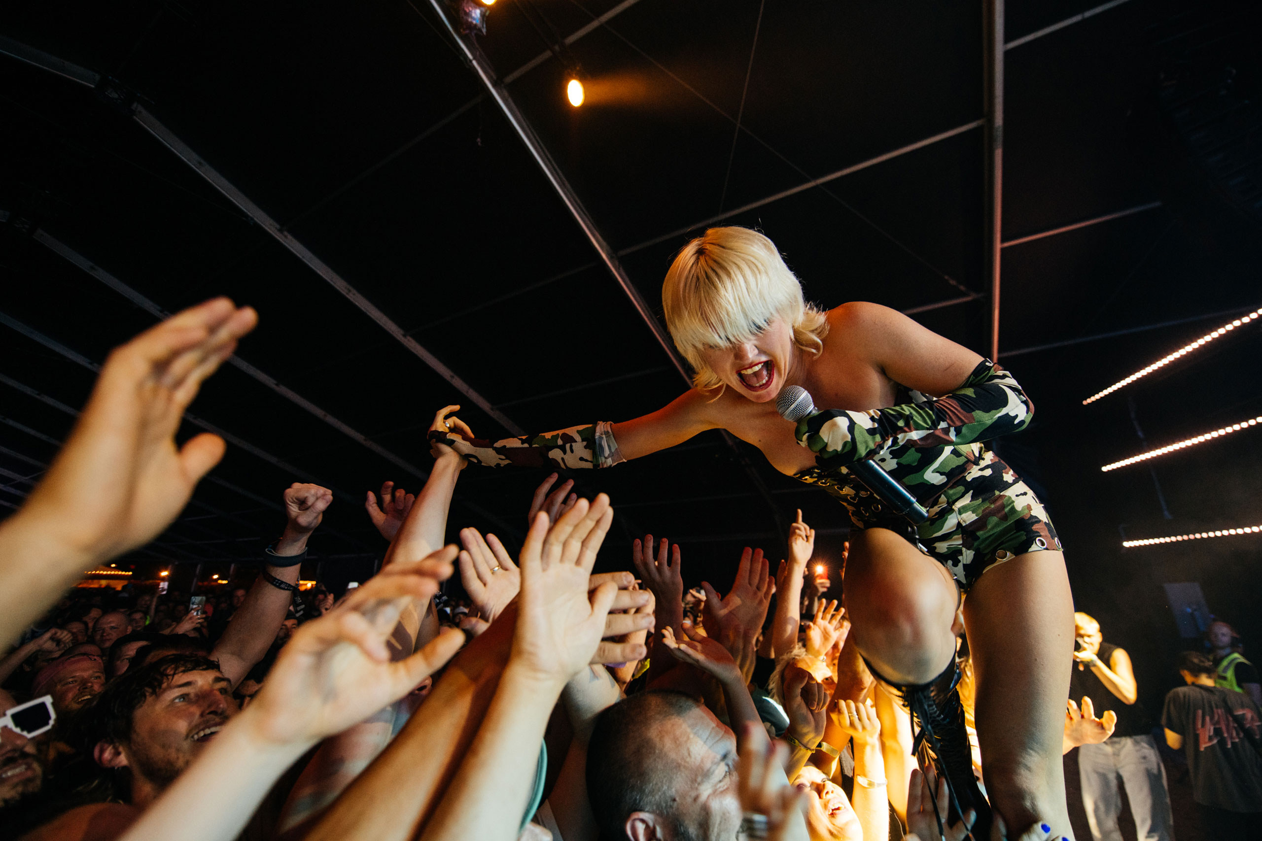 Occupying the same slot the next day are Amyl & The Sniffers, who seem similarly happy with their booking. “We got that fucking midnight slot!” shouts lead singer Amy Taylor before launching into a set which feels like the audio-equivalent of a hand grenade. People are crowd-surfing from about five seconds in and before long a circle pit forms which is so big it threatens to touch the sides of the tent.