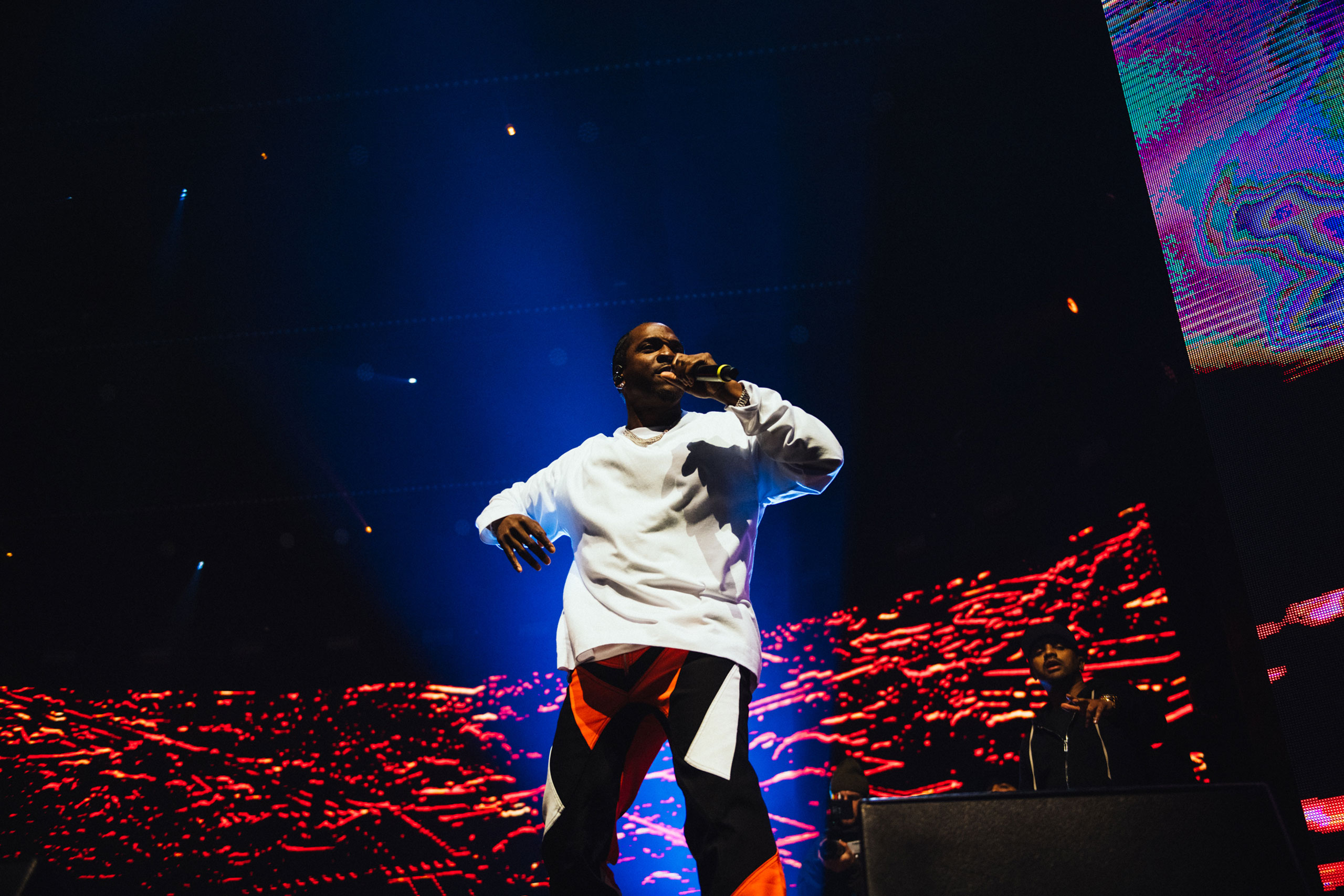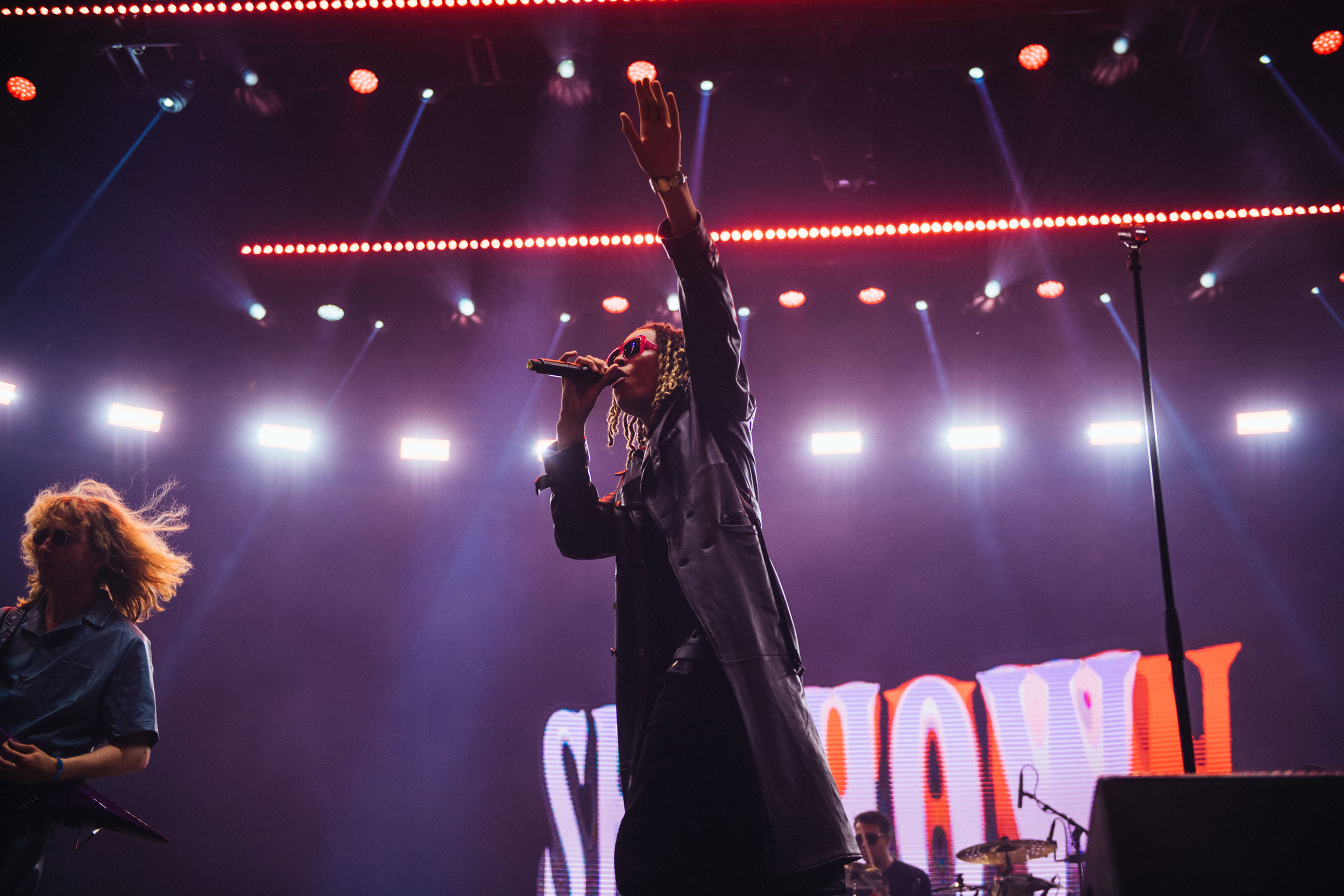 Sunday is a similarly eclectic experience, with Finnish trap artist Sexmane working the tent into a frenzy, complete with a full live band and a guitarist whose solos would put some rock bands to shame. A rotating ‘SEXTAPE’ screen graphic completes the absurd picture, but with guest stars and an undeniable stage presence, he’s an unexpected highlight of the afternoon.
