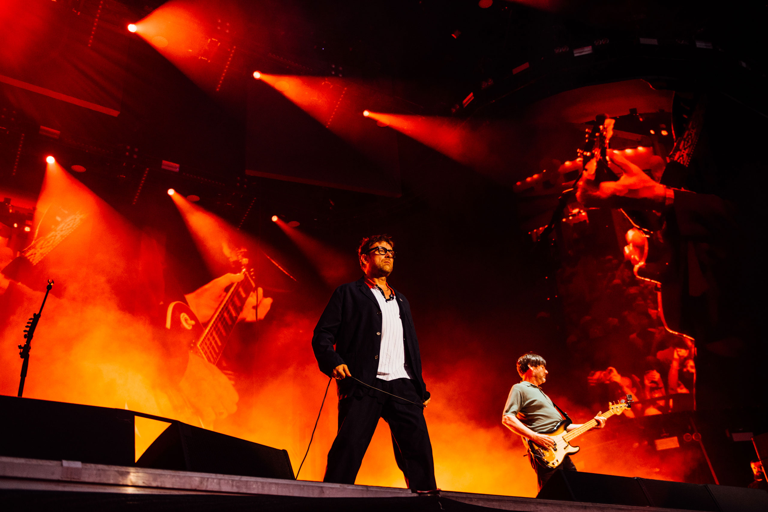 Topping the bill are Britpop icons (and Dork cover stars, dontcha know - Ed) Blur. There’s always the worry that reunion tours are cynical cash grabs or attempts to recapture decades-old magic, but tonight’s set shows the right way to go about things. Alex James starts things off reclining in an armchair for some reason, Damon struts about in a feather boa, and the whole band seem genuinely thrilled to be there.