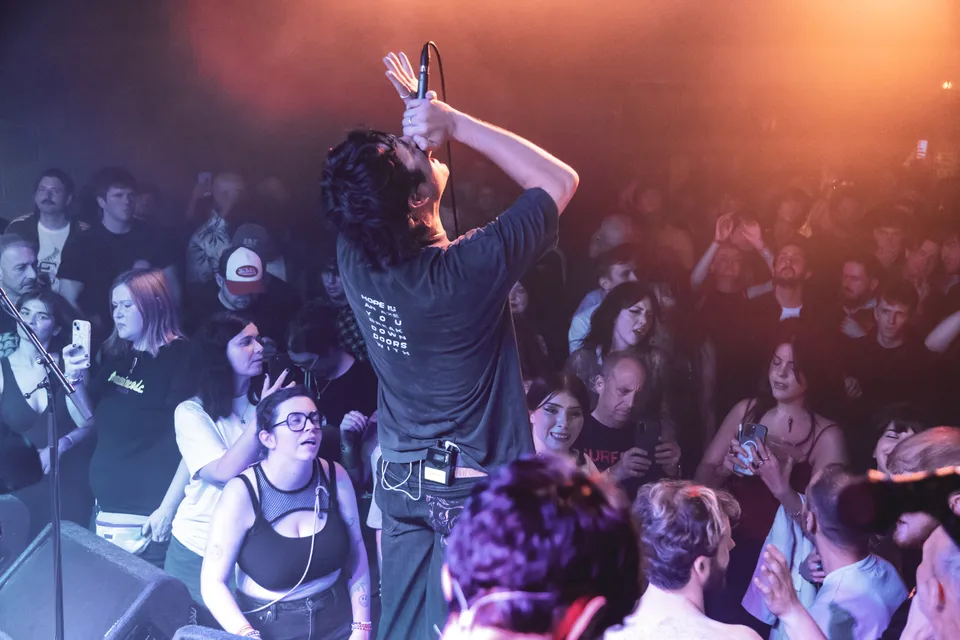 By the time singer Dan Hoff has got to the first "it’s a problem that they all have" in opener ‘Nausea’, the pit has opened up, and the masses are screaming the words back to the Irish quintet. Cycling through each searing banger from their acclaimed first record, the band keep the energy and excitement at fever pitch, as ‘Close Call’ bleeds into melodic yet malevolent single ‘Des Goblin’. It’s not long before Hoff and bass player Charlie McCarthy are in the bit, dripping in sweat and demanding even more from their flock of loyal moshers. McCarthy ends up on the bar halfway down the room before the band fly into ‘Dipping Out’, a track they dedicate to ‘all our mates from Ireland who moved to London’; by the sound of the cheer that erupts, most of them are in the room.