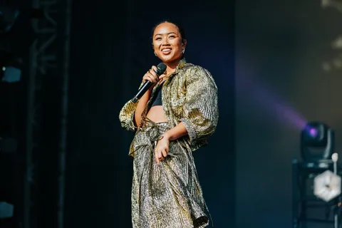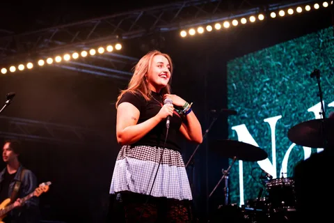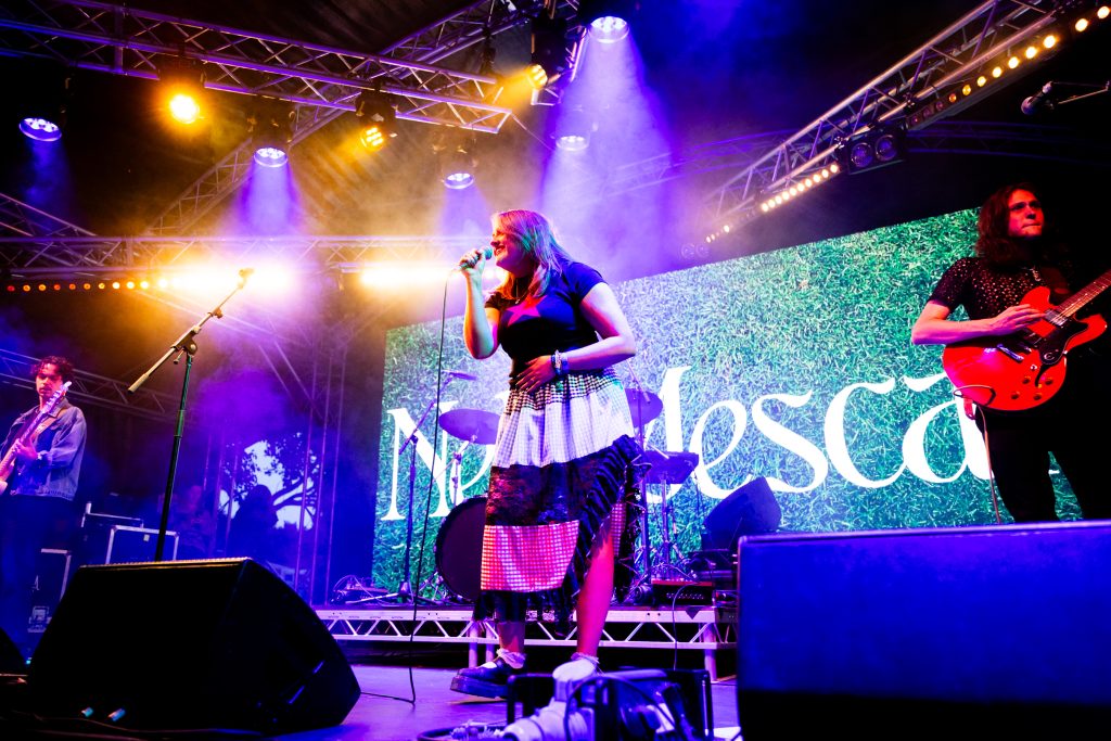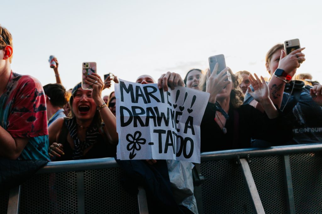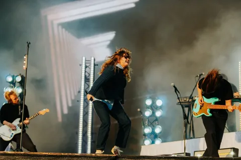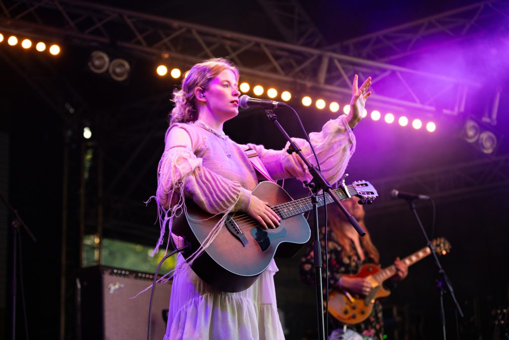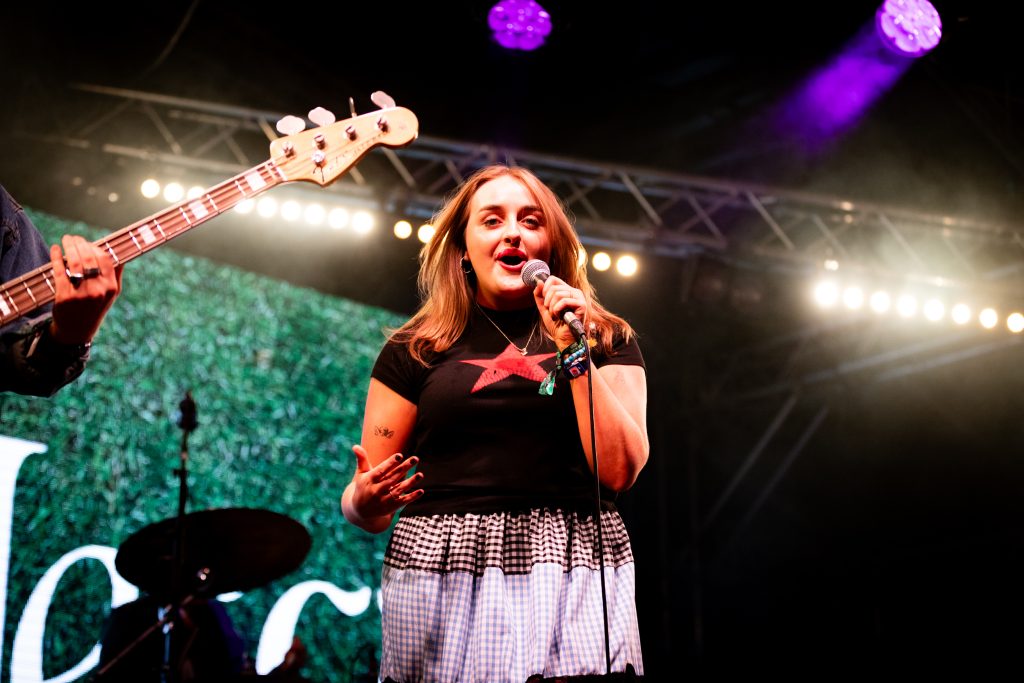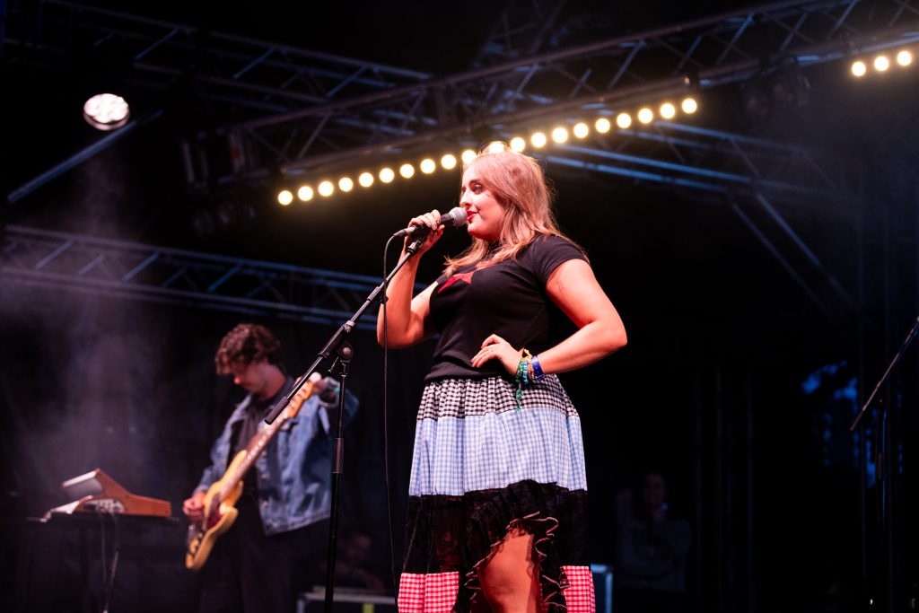 The rest of the supporting lineup for Haim’s headline show at All Point East has also been carefully curated to get the crowd as Haim-worthy as possible. The Cupra North tent plays host to Australian electro-pop party starters Confidence Man after Romy’s deliciously feel-good set while the L’Oreal Paris stage honours the band’s more folk-rock inspirations. Paris Paloma starts her set with the hushed gloom of ‘Notre Dame’ before the haunted, rugged ‘Mulled Wine’ brings a quiet over the buzzing festival crowd. Elsewhere, Nell Mescal’s set is far more chaotic. “There’s too many of you here, go away,” she beams after the raucous reaction to ‘Cutting Ties’ while ‘Punchline’ and ‘Homesick’ have bloomed into swaggering festival anthems in recent months. New song ‘Teeth’ sees that assurance continue. A smirking revenge anthem about someone reading her diary, she twists vulnerability into snarling power.