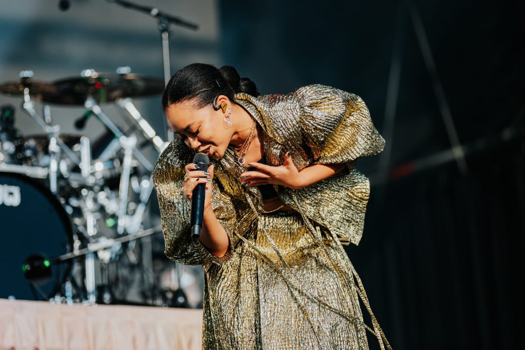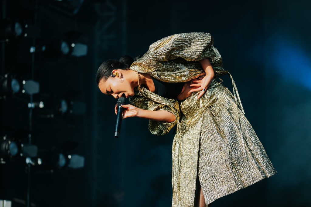 Back on the main stage, Griff is playing her first and last festival of the season after a stint touring stadiums with Coldplay. She’s always been a powerhouse pop performer, but there’s a newfound glee running through today’s set, as she embraces the carnage of these big, outdoor shows. ‘Head On Fire’ and ‘Black Hole’ are the sort of charged sunshine bangers that are perfect for days like this, while new single ‘Vertigo’ takes self-doubt and turns it into euphoria, via glistening pop hooks. “I’m just here to have a good time,” she grins.