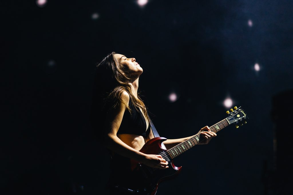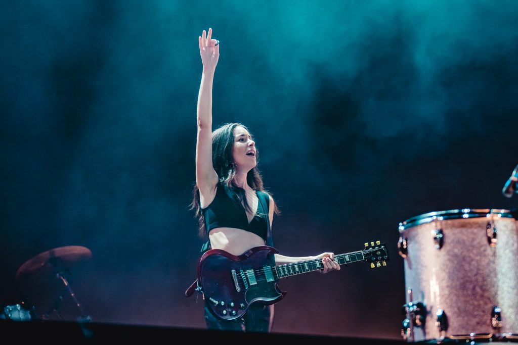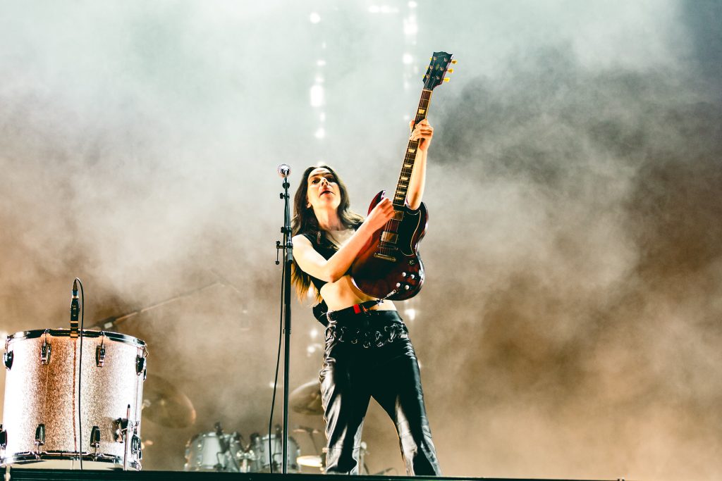 According to Alana, there are three things everyone needs to do at a Haim gig. Dance your heart out, sing your heart out and “have the best fucking night”. The band make that really easy, with a glorious set that’s a little nostalgic, a little sentimental and a whole lot of fun. Coming onstage after Fergie’s hammering ‘London Bridge’, the trio launch straight into ‘Now I’m In It’ with its big communal singalong and three-way drum breakdown. Este cracks up at just how loud the reaction is from the crowd before the dreamy ‘I Know Alone’ morphs into a sax-laden, pop-belter, complete with a smirking dance routine.
