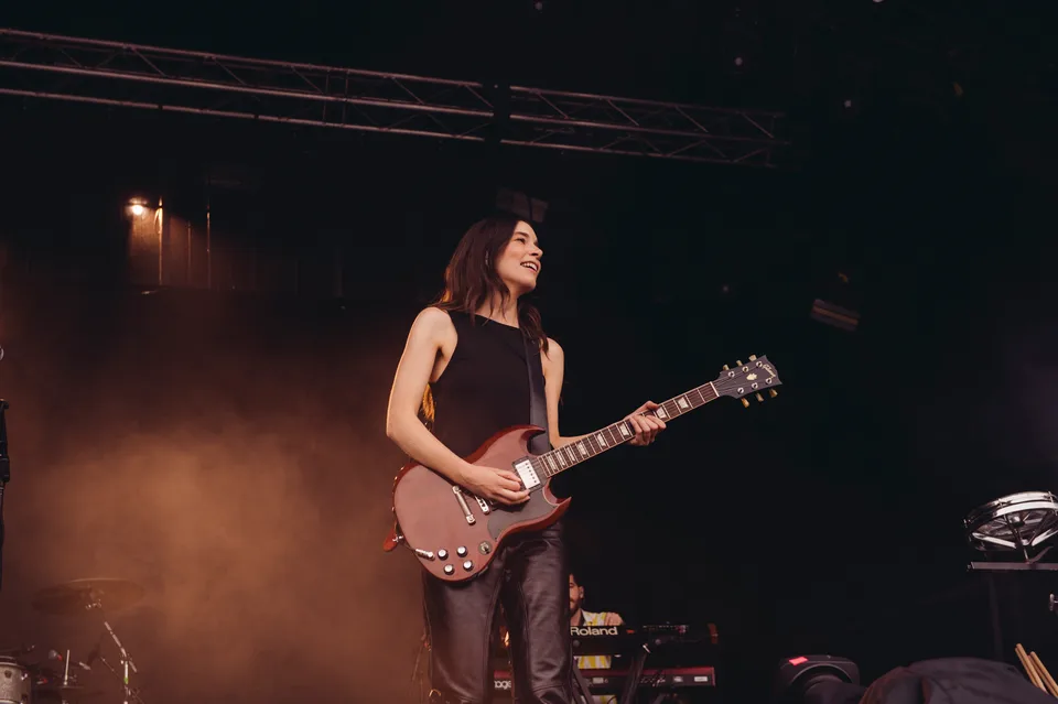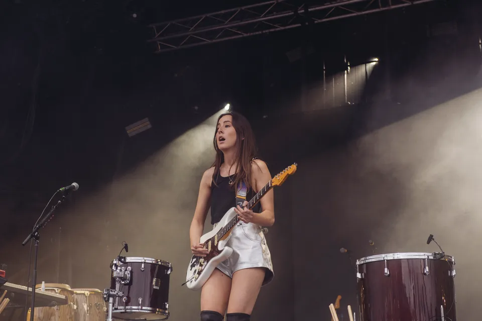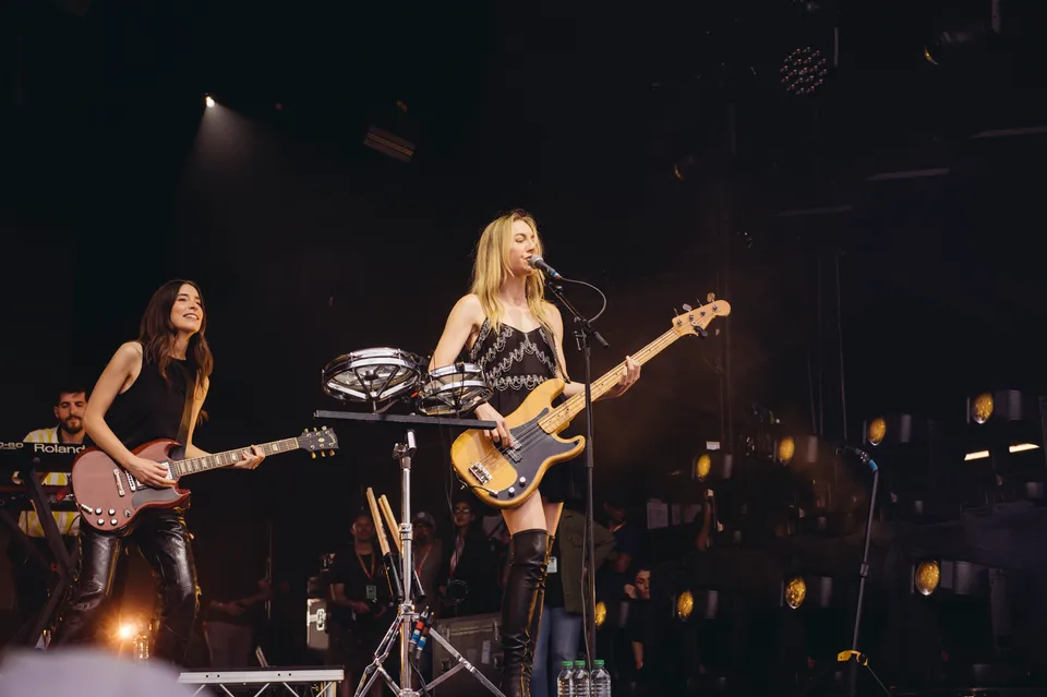 The old hits provide punctuation. 'The Steps' turns the hillside into a stamping ground, festival plastic pints sloshing in the air. 'Gasoline' – originally a slinky, dawn-after-breakup tune – becomes an unapologetic roar. The setting suits them: Haim have always flirted with classic rock showmanship, and in this compressed, one‑hour format, they finally give in.