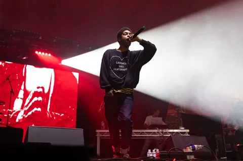 It takes KennyHoopla roughly 2 minutes before he dives off the stage and into the crowd. He spends the entirety of the set ping-ponging between the two, perhaps trying to fit the experience of both punter and performer into his first trip to Reading Festival. He crowd surfs, he moshes, he breaks a microphone. It’s all gloriously chaotic.