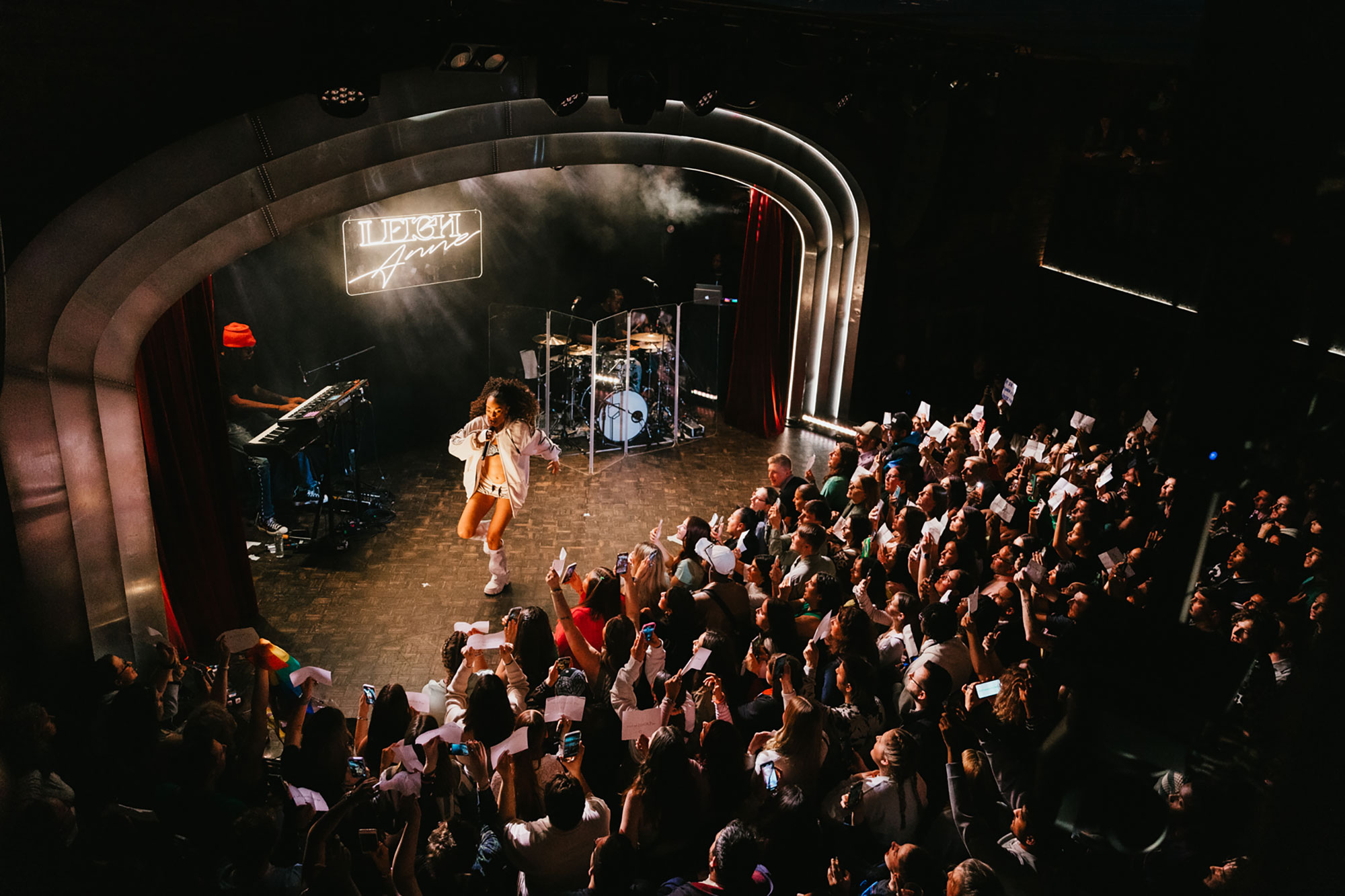 A costume change is soundtracked by a spoken word poem about obsession, struggle, and eventual happiness with nods to her husband and twins, while the main set ends with a dramatic curtain close. It's a thoughtful, carefully constructed show that's clearly been crafted with much bigger rooms in mind. The gig begins with a pre-recorded spoken word message, with Leigh-Anne admitting that for years, she felt overlooked.