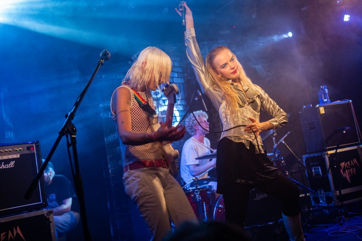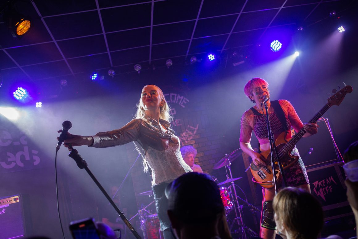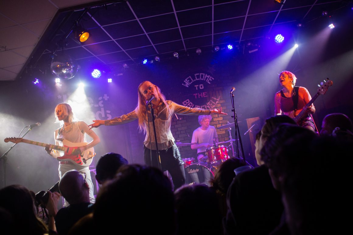 From The Night Café, it’s a race back down to Call Lane for Walt Disco’s packed-out closing set at Oporto. The most glittering, enigmatic band of the day completely ooze glamour, so much so that the small stage can barely contain the six-piece. It comes as no surprise, then, that vocalist James Potter cannot resist spending the majority of the set grinningly twirling amidst the crowd. They head full pelt into their latest single, the melodramatic and intimate ‘Weightless’, and it’s pure magic. It’s a transformative moment, taking you far from the spinning disco ball in Oporto’s backroom to a fantastically euphoric universe of Walt Disco’s own creation. It’s all too easy to become completely enamoured with the irresistible, yet mysterious band, but as the room comes back down to earth, there’s a resounding sense that everyone is leaving with that set permanently etched in their minds.