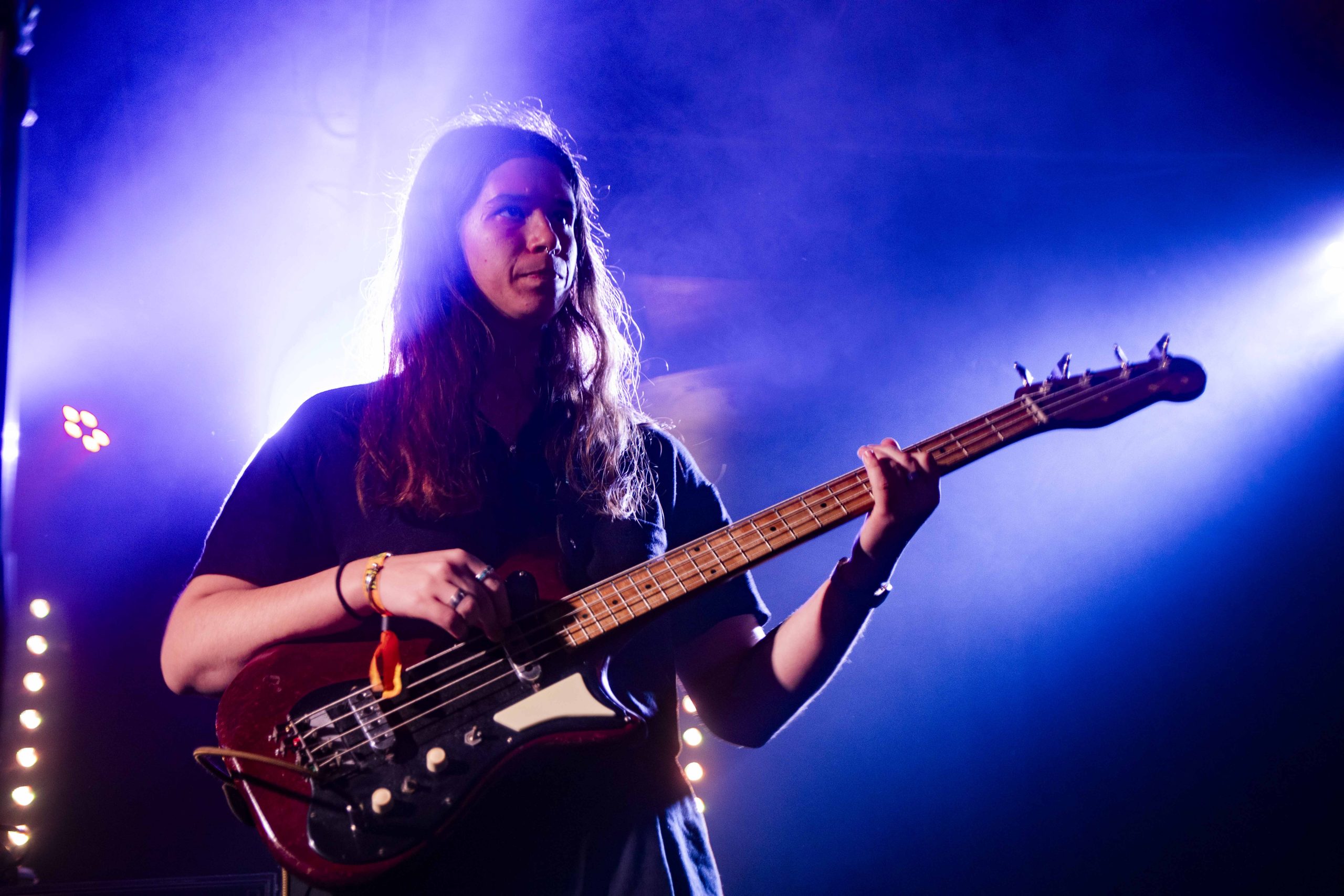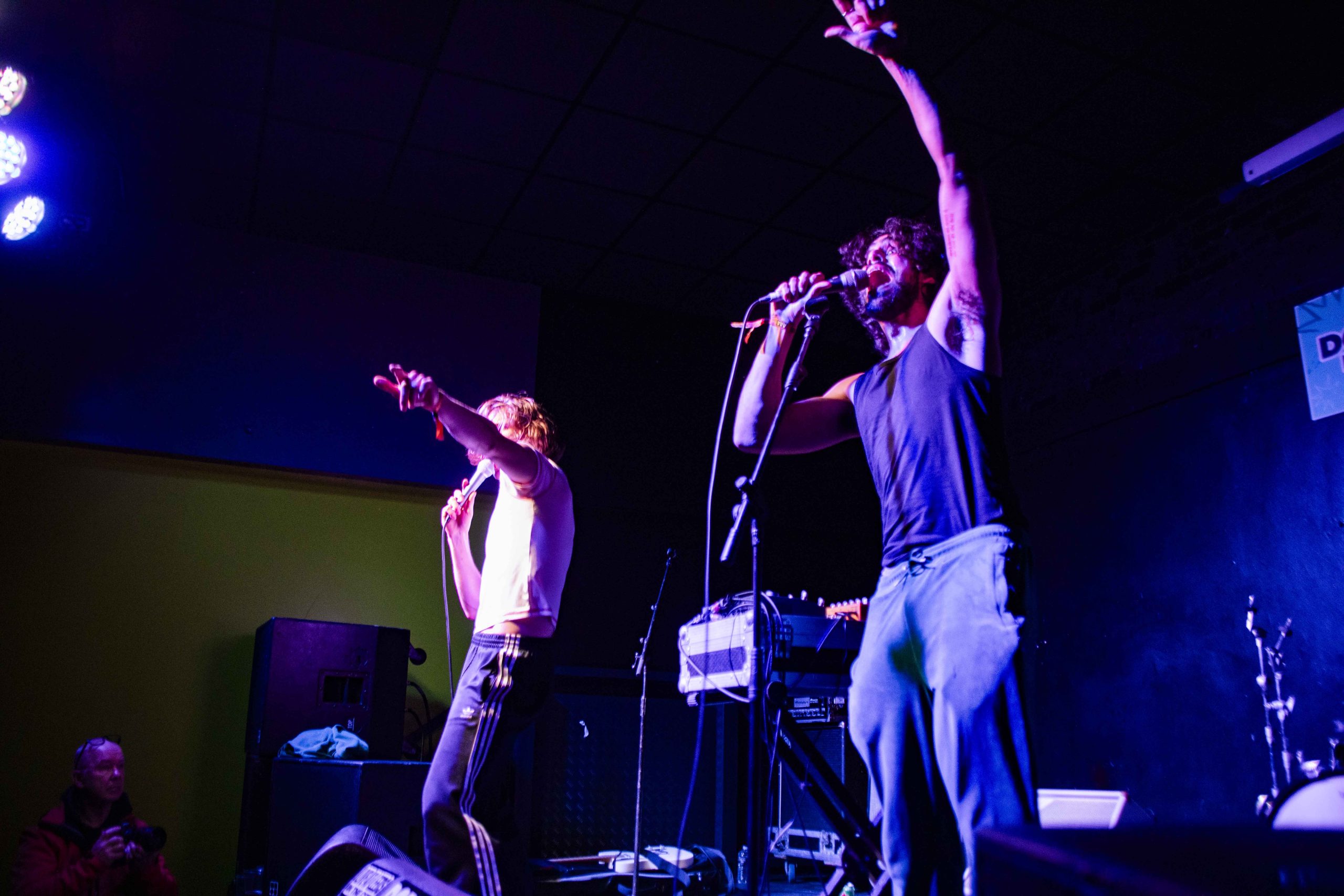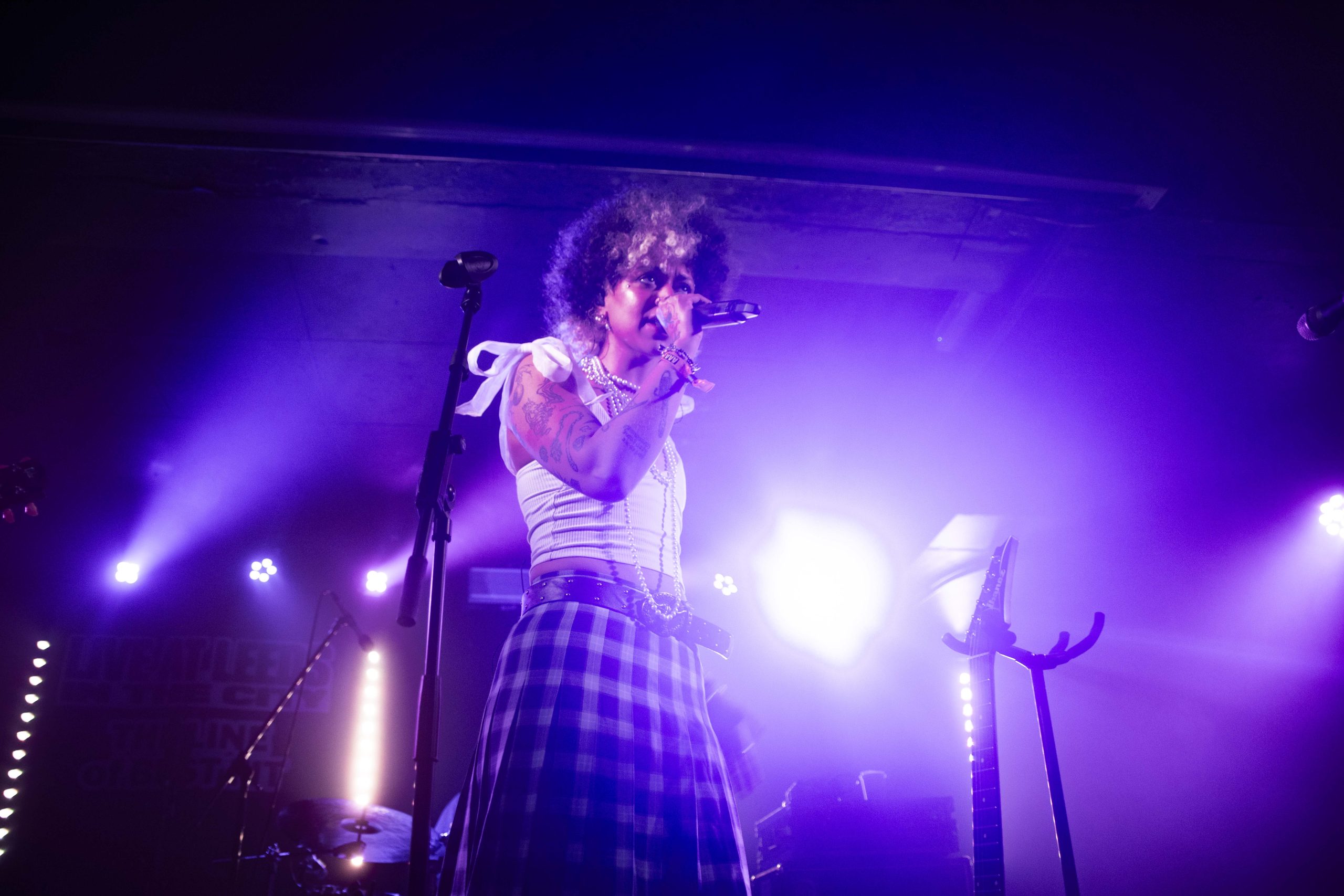 It's barely 12.30pm, and yet we've already booed the likes of Trump and situationships, screamed "fuck that guy" multiple times, and learnt some very insightful kangaroo facts. Nxdia is bringing firestarting energy to their set, and it sets the tone for the day perfectly. 'Boo, Nevermind' immediately places the crowd in The Wardrobe in the palm of Nxdia's hands, and there's no denying that they're well looked after there. Nxdia is a commanding, electric presence as they race through a set filled with high-octane bangers. Rich, unfiltered lyricism, storming guitar riffs and enough riotous vigour to see us through the rest of the day with ease, Nxdia paints an enigmatic figure hard to tear your eyes away from. 'Tin Man' is a soaring, tender moment, whilst 'Feel Anything' is a deliciously disruptive closer to a set that feels like it is only the beginning for Nxdia. (NM)