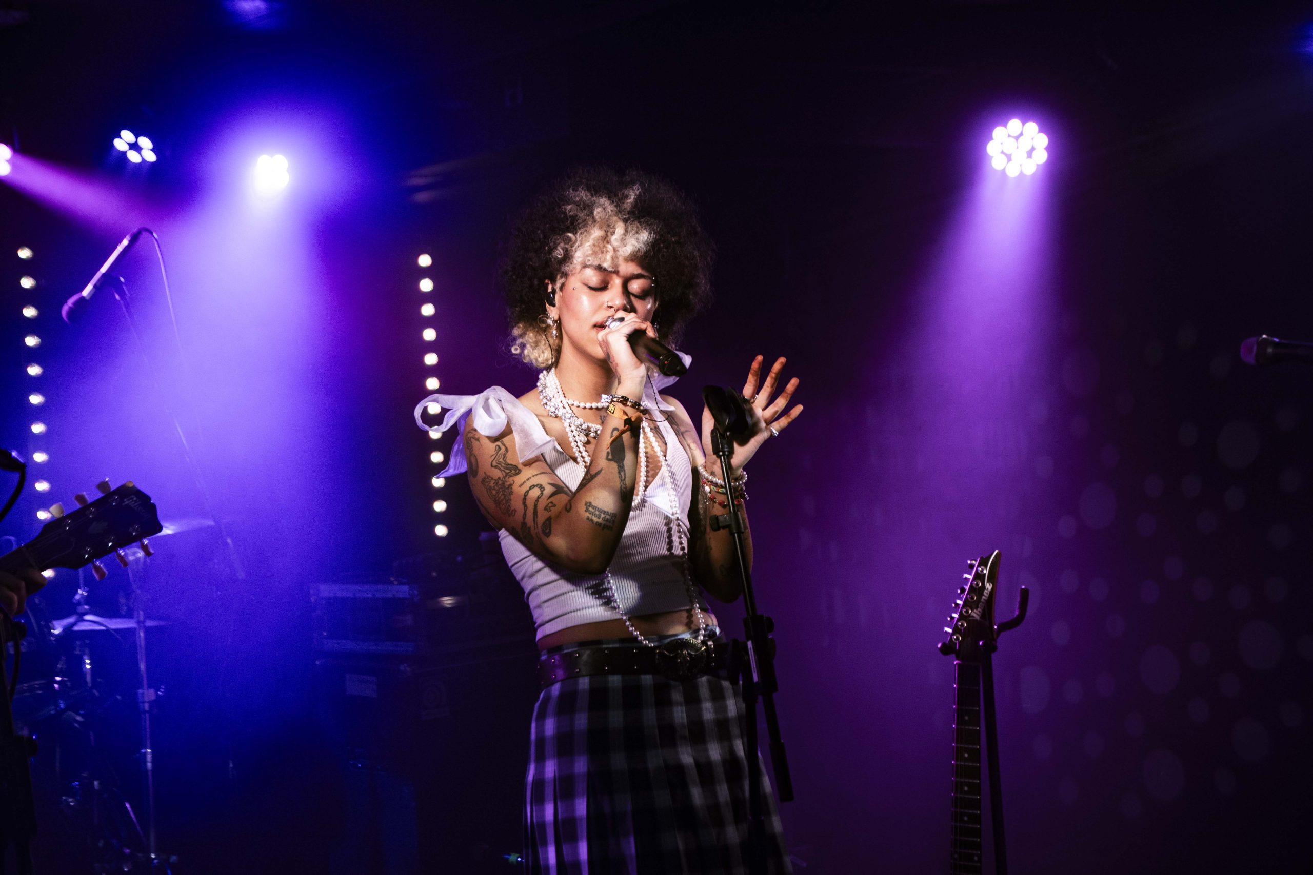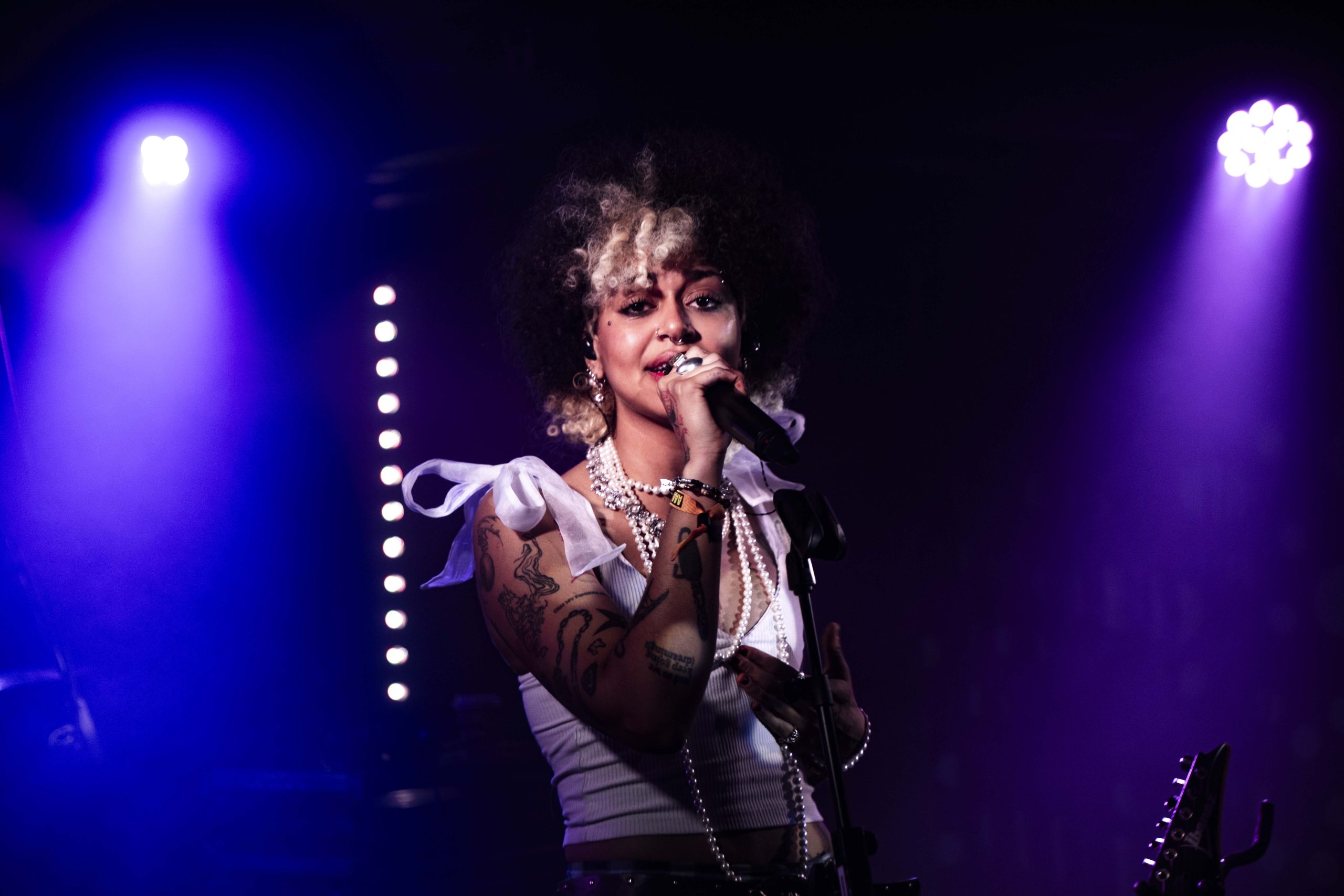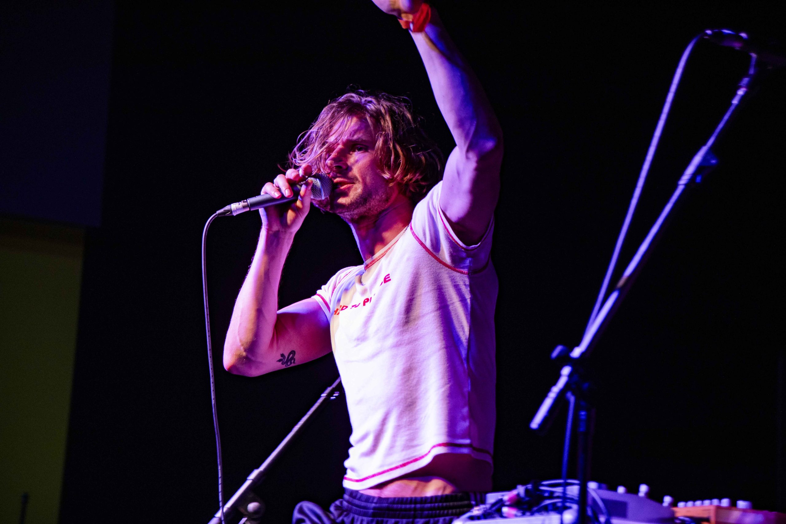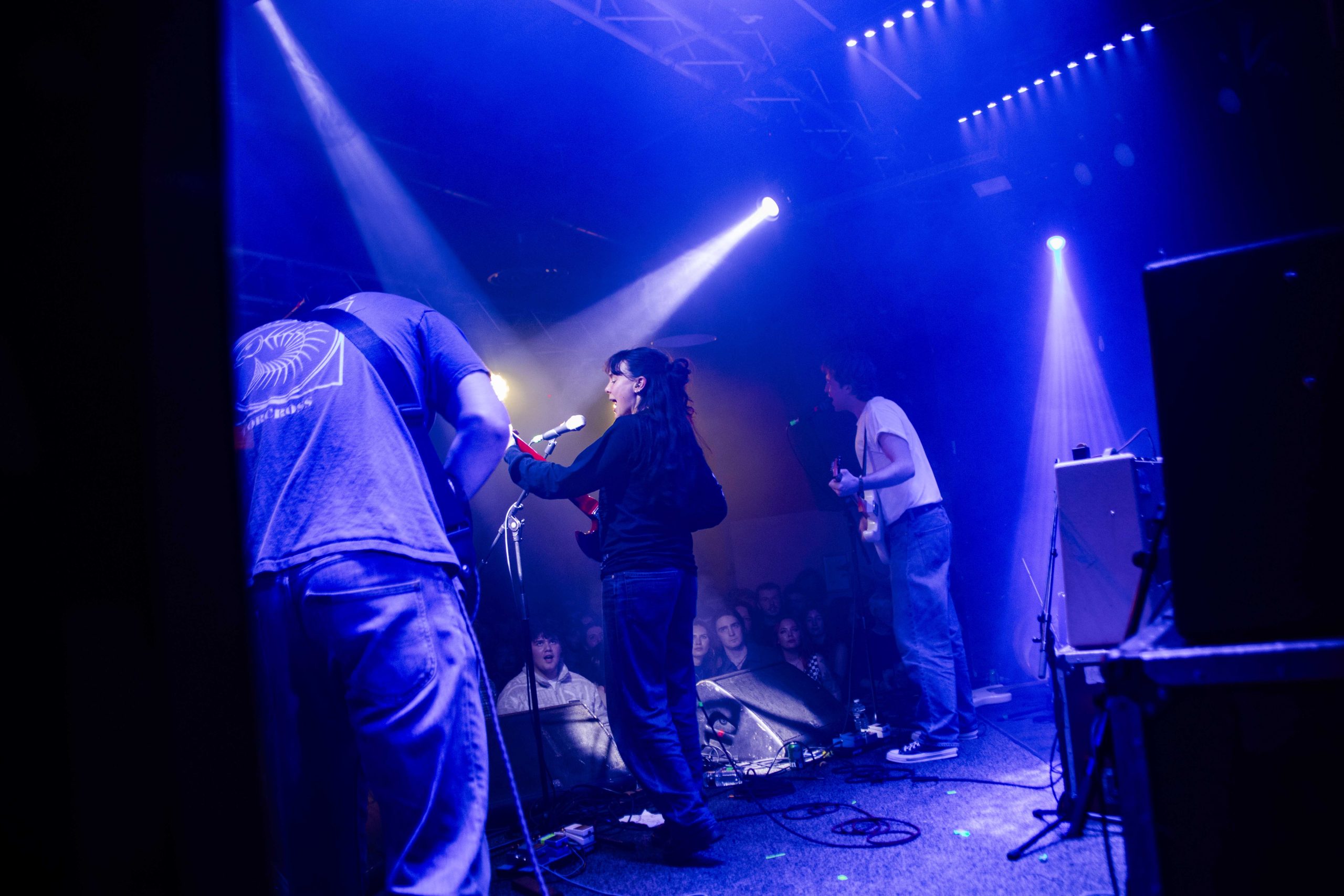 It's barely 12.30pm, and yet we've already booed the likes of Trump and situationships, screamed "fuck that guy" multiple times, and learnt some very insightful kangaroo facts. Nxdia is bringing firestarting energy to their set, and it sets the tone for the day perfectly. 'Boo, Nevermind' immediately places the crowd in The Wardrobe in the palm of Nxdia's hands, and there's no denying that they're well looked after there. Nxdia is a commanding, electric presence as they race through a set filled with high-octane bangers. Rich, unfiltered lyricism, storming guitar riffs and enough riotous vigour to see us through the rest of the day with ease, Nxdia paints an enigmatic figure hard to tear your eyes away from. 'Tin Man' is a soaring, tender moment, whilst 'Feel Anything' is a deliciously disruptive closer to a set that feels like it is only the beginning for Nxdia. (NM)