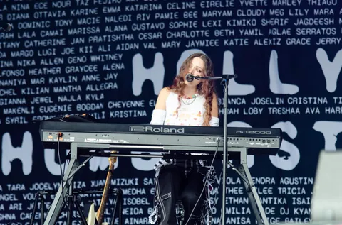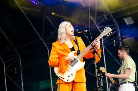 Holly Humberstone spent last year’s festival season marking herself out as an alt-pop hero in the making, and she spends today claiming her crown. Nestled behind her piano for much of the set, she makes the open air of the towering main stage feel friendly and intimate, helped along by the long chats between songs in which she gives us the stories that inspired her. Her monologues manage to feel like conversations, but as soon as she starts singing, she’s in another world. Though there’s an understated element to her music on record, that slips away here as Holly’s swirling, gorgeous textures go stratospheric, humming through the breeze. The magic picks up even more as she gets to fan-favourites, but they finish all too soon. After highlight 'London Is Lonely'’s ethereal tones come to an end, it’s a hypnotic sweep of non-stop sparkle till Holly leaves the stage to the final reverberations of 'The Walls Are Way Too Thin'.