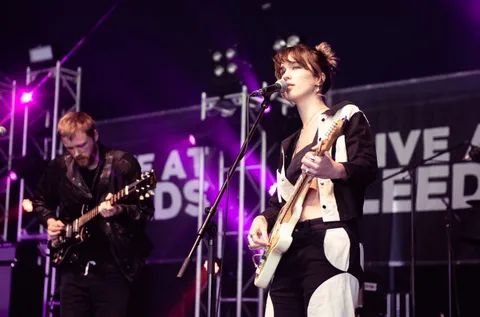 Despite the draw of the "platty joobs" (those two words are mentioned around the fest by artists and fans alike way more times than we care to mention) or the disruption of a Northern Rail strike (another Live at Leeds weekend staple), from the opening of the gates onwards, Temple Newsam is busy and glittering. Lauran Hibberd couldn’t be a more fitting opener for Live at Leeds’ first-ever outdoor main stage, decked out in an orange feathered suit to match her technicolour tunes. She easily charms her sizeable crowd, not hesitating to treat us like her best friends. In the preamble to her latest single, 'I’m Insecure', Lauran laughs as she tells us, “it’s about my irritable bowel syndrome… girls poo too! Sorry boys!” The cheeky smile and wink in her voice is tangible, and characterises her whole set, culminating in the ultra-buoyant '5K (Still Running)'.