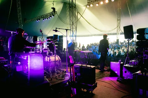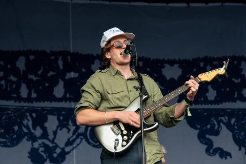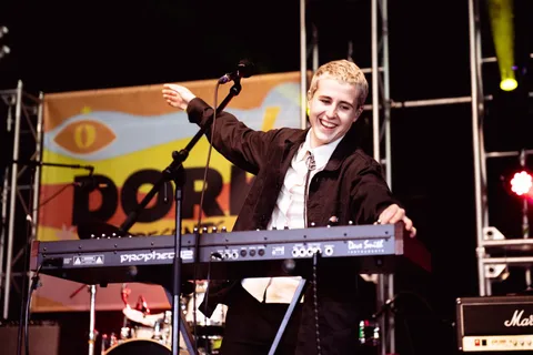 From there, it’s over to our very own stage: Dork Presents! Sprawling across the back of the tent are not one, but two stages, hosting acts back to back, so there’s always good stuff going on. Right now, it’s Molly Payton, who is enchanting audiences with her soulful songwriting. Her richness still feels vulnerable, striking a balance that crackles with intensity and star power. And elsewhere, Liverpool’s STONE convey much the same intensity, albeit in a very different style with their driving indie-punk. Under the overcast skies at the Hill Top stage, frontman Finlay Power captivates as he careens about, delivering their charged lyrics impressively cheerfully.