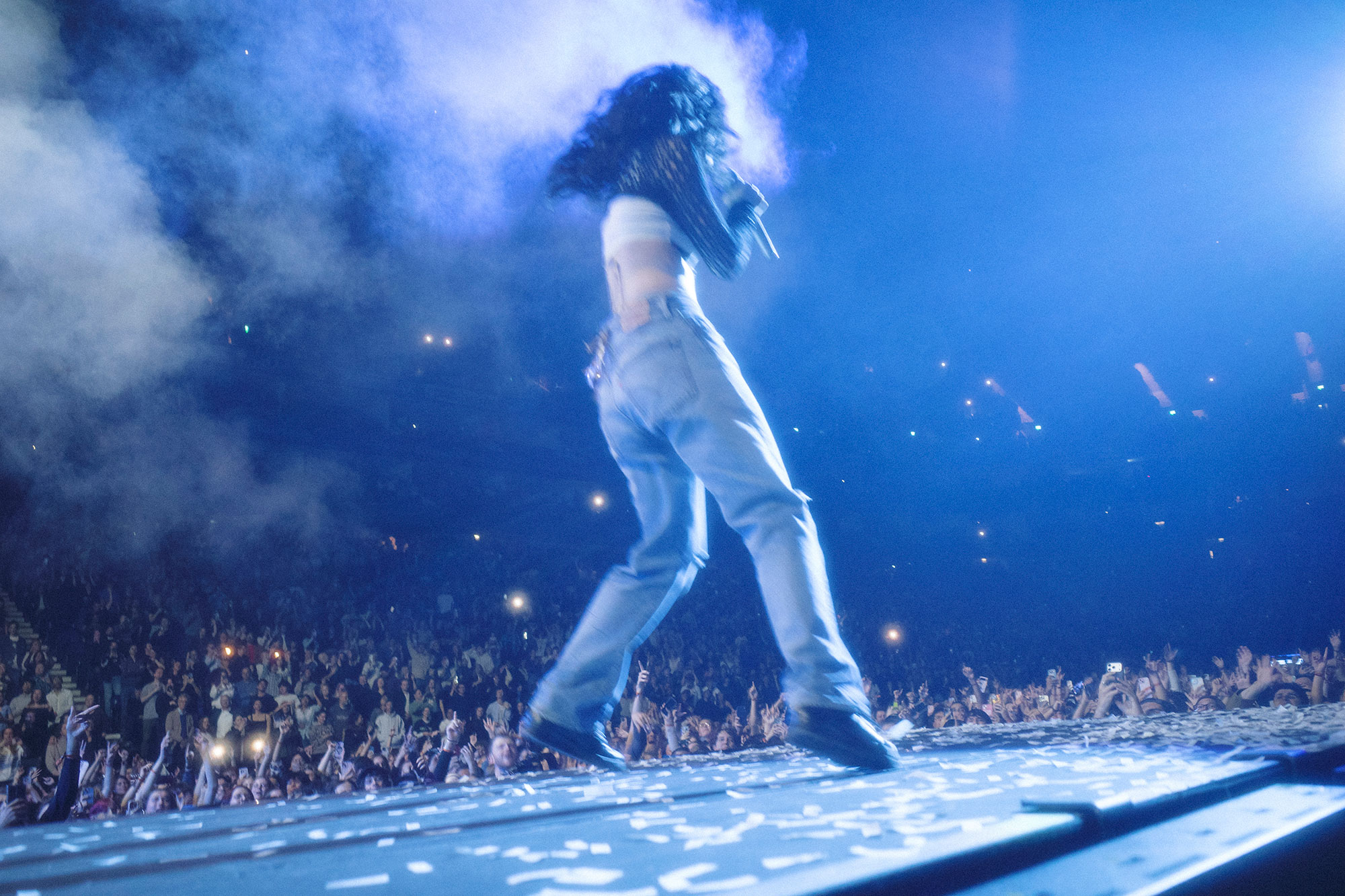 That pause only intensifies the release, and both 'What Was That' and 'Green Light' play out with more catharsis than ever as a final blast of euphoria. When the spectacle that is 'Ultrasound' is done, Lorde uses the final moments to reconnect with the audience; in what feels like a fourth wall break, she steps down and walks through the crowd for 'David', and during 'Ribs', she invites two fans to share the B-stage with her to dance.