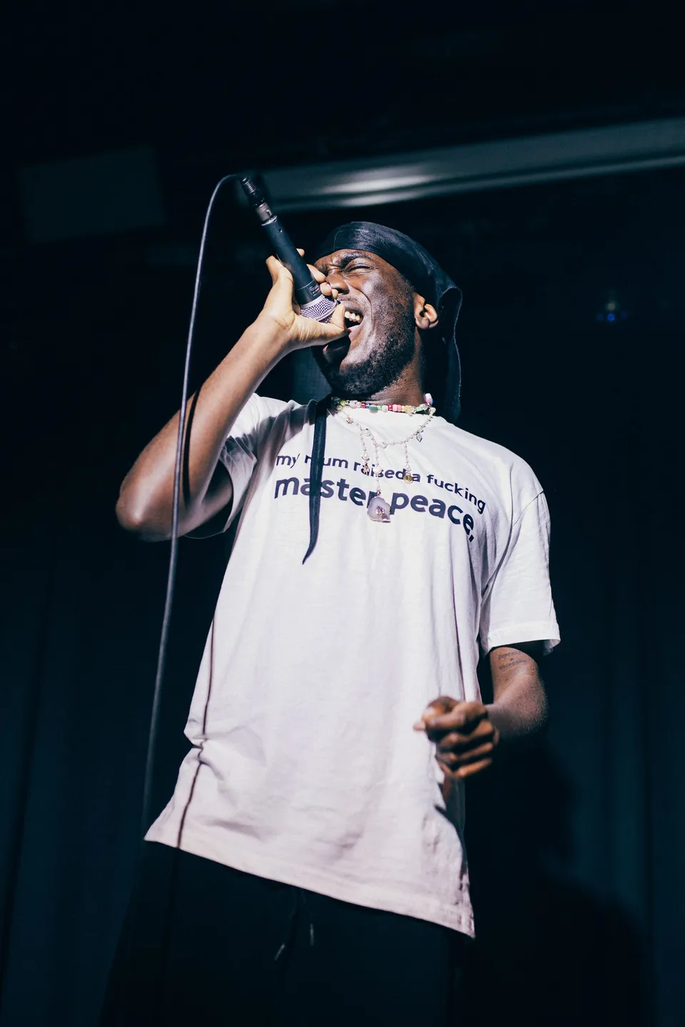 Bounding onto stage to the rabble-rousing 'LOS NARCOS', he transforms Colours Hoxton into an immediate frenzy. It shows what has made Master Peace such a sensation. Speaking direct with no filter while turning anger, despair and fear into joy - his show radiates confidence. The swaggering 'LOO SONG' slams into a moshpit-kicking riot with 'I Might Be Fake', and 'Start You Up' lands as a bouncing knockout.