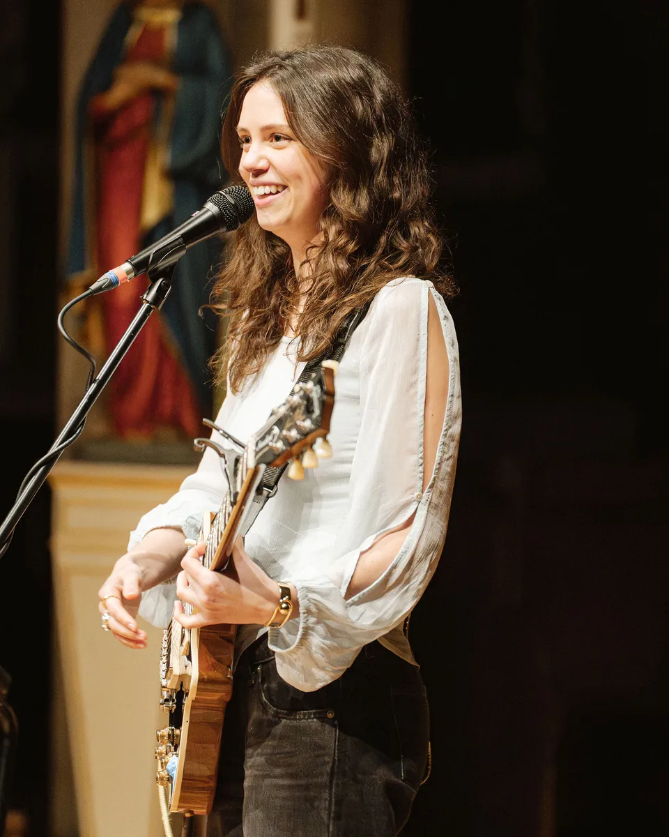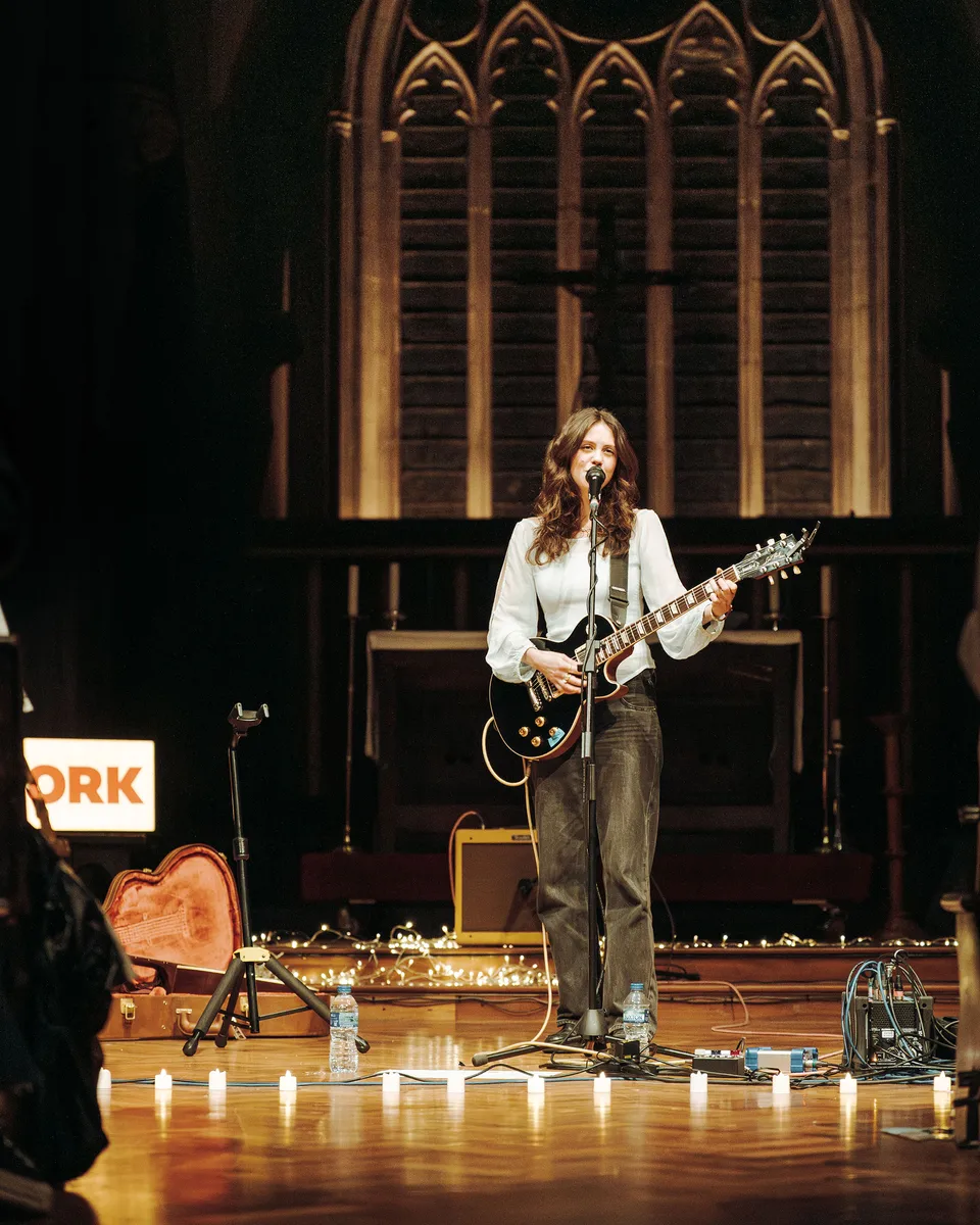 Within this setting, Matilda showcasing what comes next feels even more unique - glimpsing into the songs and tales that have come together during the ride and a fresh new ambition because of it. 'Inventing' is met with delight, 'Japan' is delicate and swooning, 'Imagine That Now' is a wide-eyed dose of optimism about the idea that the person you're waiting to love is currently out there somewhere, and 'Chain Reaction', written just a week before around the corner from the church, whose first line "heaven is a concept" is something that has made Matilda laugh thinking about playing it tonight.