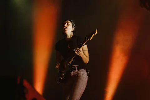 A few songs later, MUNA bring an inflatable horse onto the stage for 'Anything But Me', acquiring cowboy hats from somewhere before sending the pony crowdsurfing. She's returned safely a few minutes later. "We love a respectful, loud crowd," quips guitarist Josette Maskin. A cover of The Killers' 'Mr Brightside' soon follows, as MUNA cut vulnerability with a vicious good time. "You can always jump with your spirit," Josette instructs, making the escapism as accessible as possible.