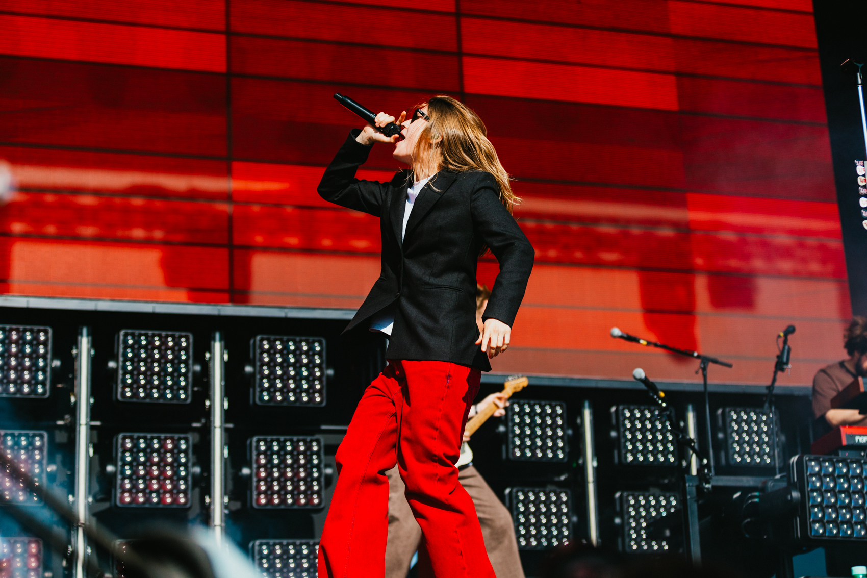 For this festival run, Olivia has ditched the sleek choreography of her recent sold-out arena run and takes to the stage with the support of a ferociously good live band. It gives the 90-minute set grit and spontaneity, but also lets Olivia soak in just how much fun everyone is having. People climb on shoulders for the folksy 'pretty isn't pretty' before the spiky sneer of 'happier' and the loved up 'so american'. She disappears to the barrier during the snarling 'jealousy, jealousy' and comes back wearing a tiara. All hail the queen of festival headliners.