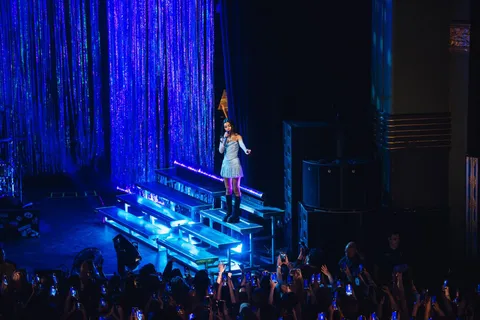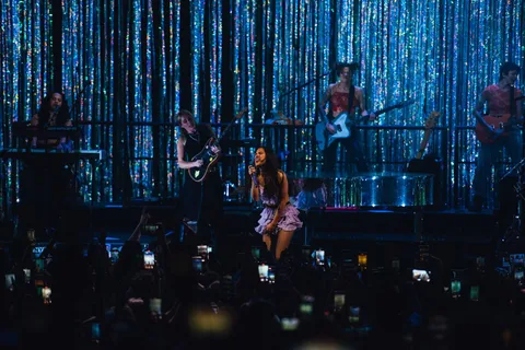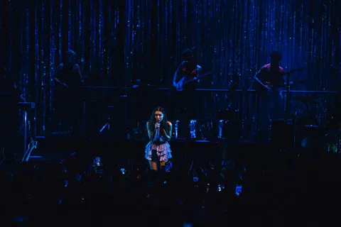 Waiting behind a purple curtain projected with the words “SOUR TOUR” is the biggest breakout pop star of the last year. She’s 20 minutes late, but what’s another 20 minutes? Most of these fans have been here for hours (some, days) already.