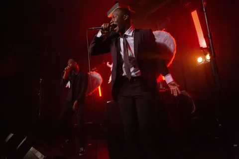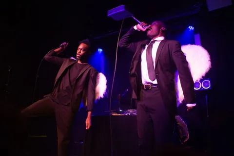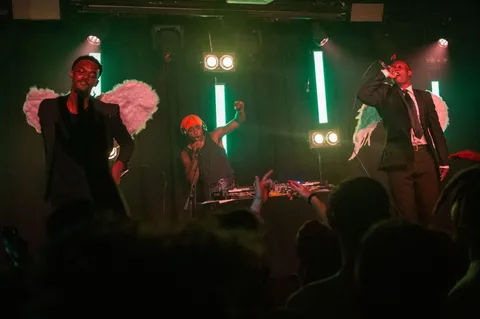 A few seconds into Paris Texas’ first London headline show, and there’s no doubt that the rap-slash-well-pretty-much-everything-actually-duo are The Real Thing and everything that ‘BOY ANONYMOUS’ and their latest EP, ‘Red Hand Akimbo’ promised them to be. Tonight’s show in Hoxton is the perfect demo of just why Brockhampton have snapped them up as support for their US run in the spring. From the moment Louis and Felix burst onto stage wearing angel wings and huge grins, it’s a real masterclass in building, and holding the energy in a room at the absolute breaking point. And then tweaking it a little bit more until the room is ready to mosh during even the slowest of moments.