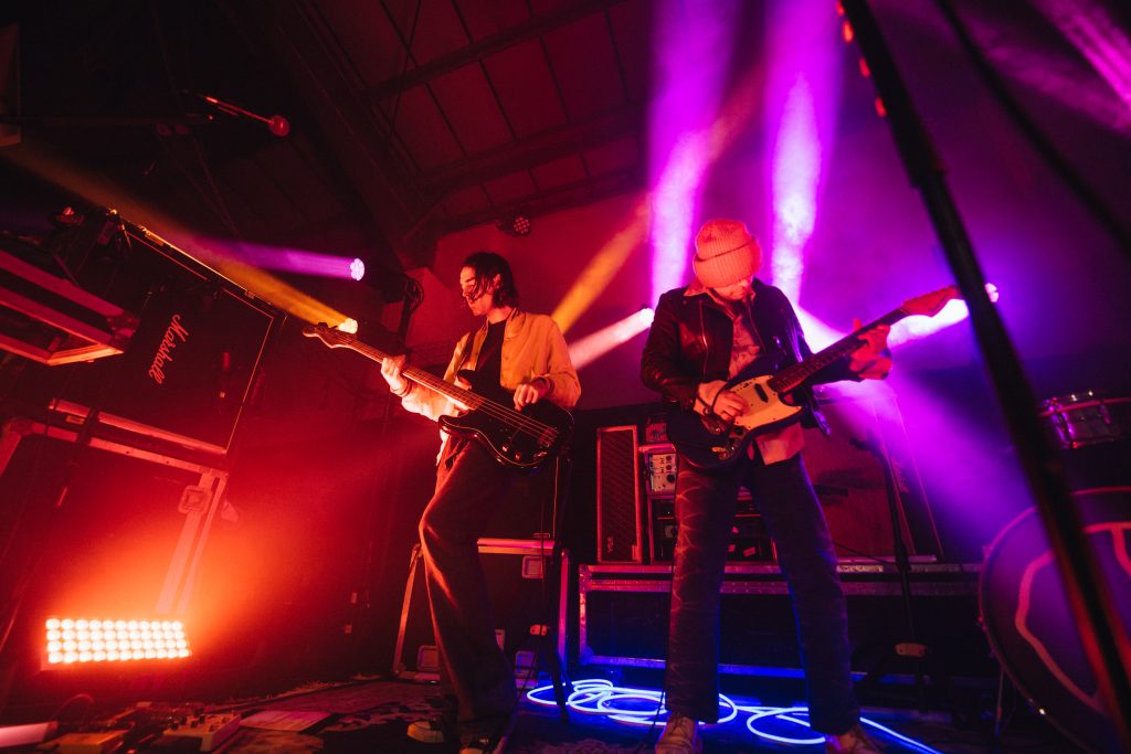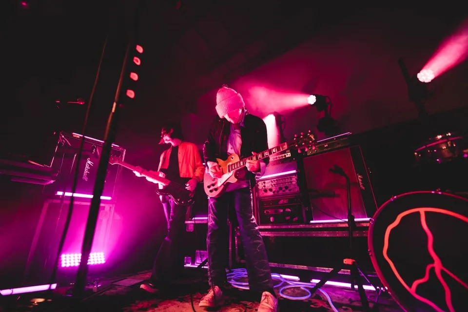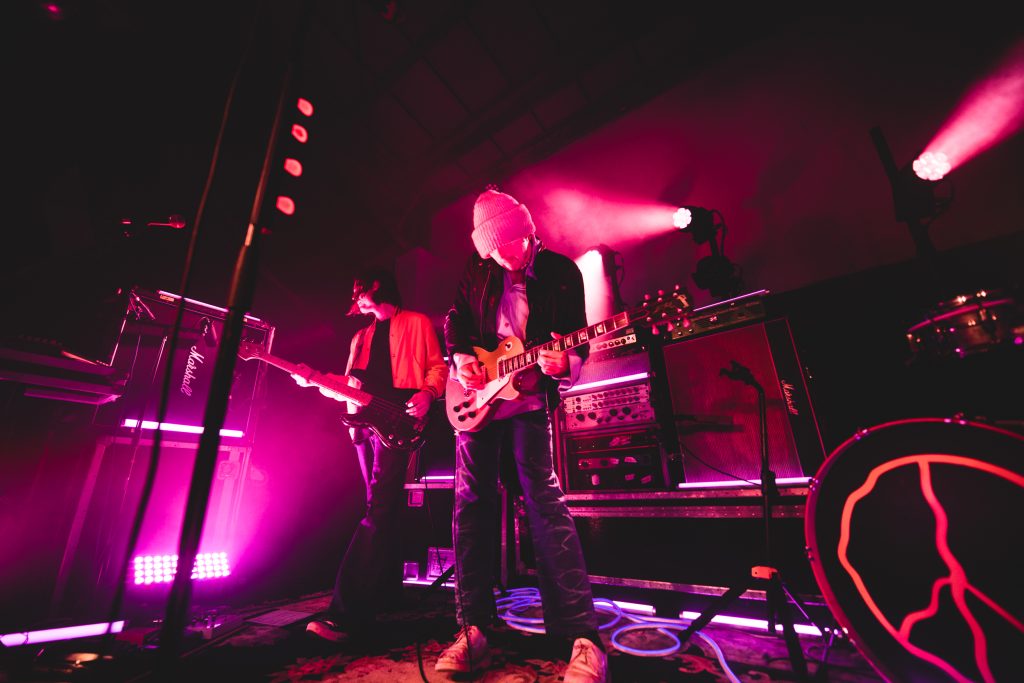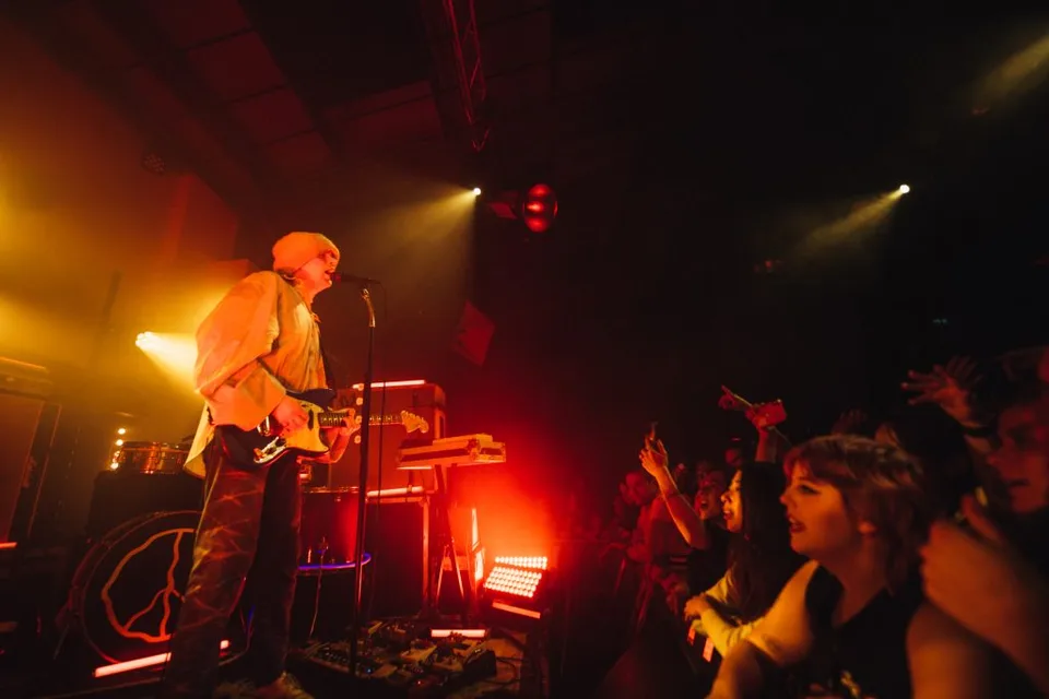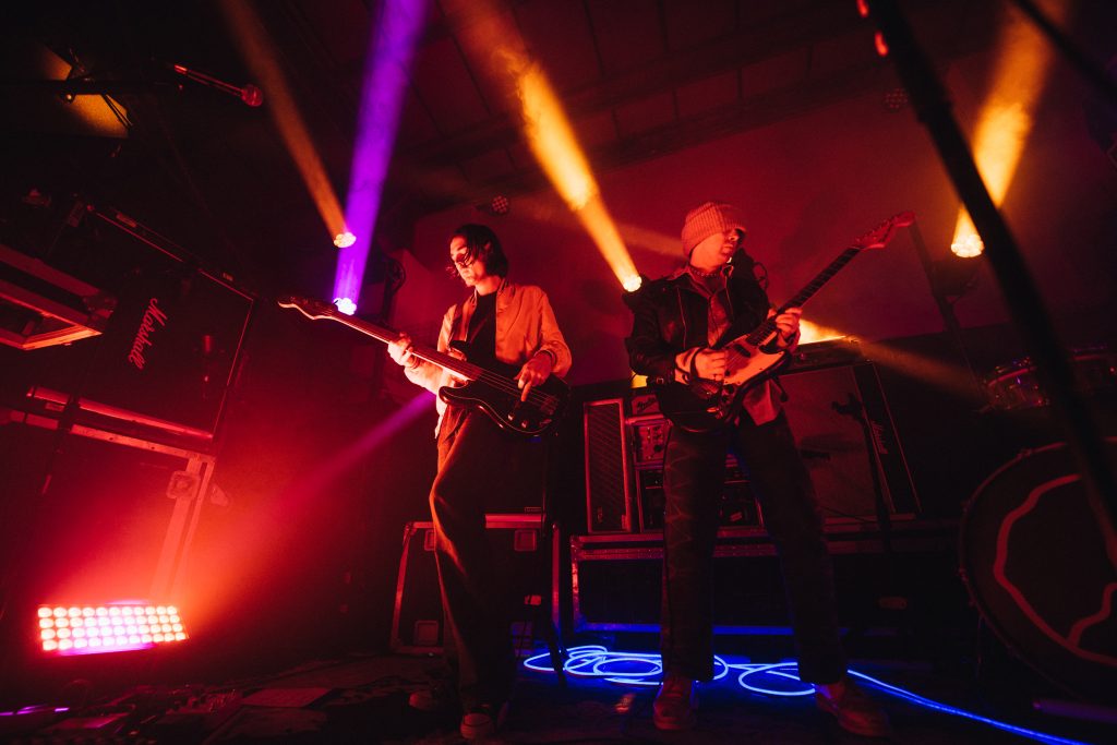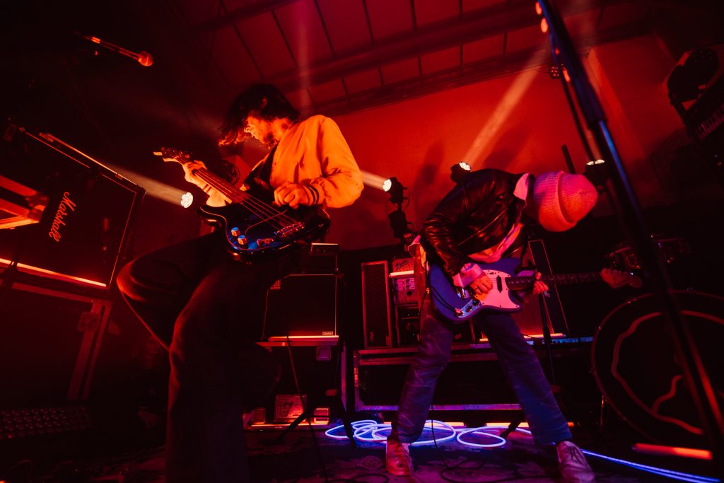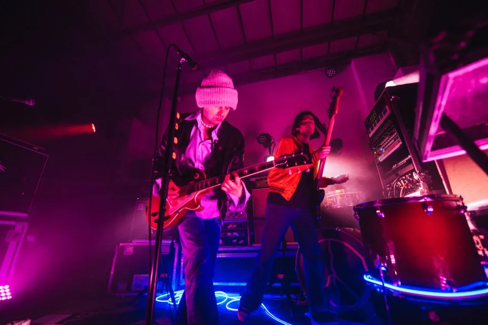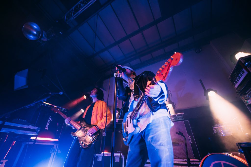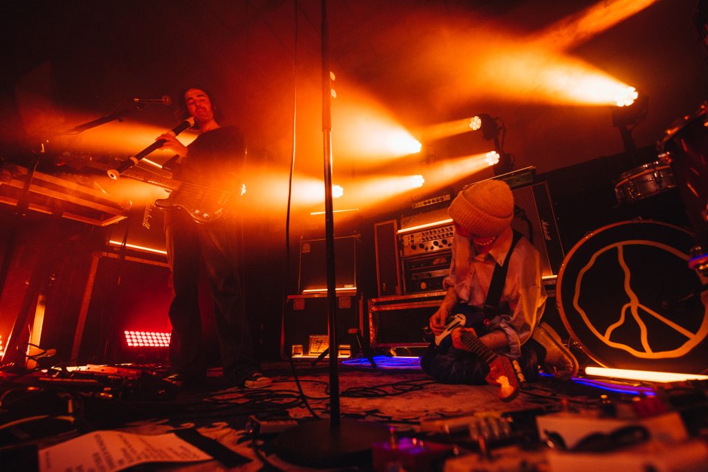 Now a two-piece and with the sort of wall of technological equipment on-stage that would have NASA stumped, it's a surround-sound takeover that pushes everything Peace is to new levels at London's Colour Factory tonight. A warehouse-styled venue more akin to club nights and sweaty DJs, Peace in 2023 run with that and more for a celebratory, emotional night that's an undeniable statement of their feverish ambition.