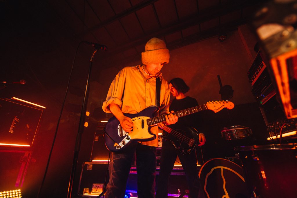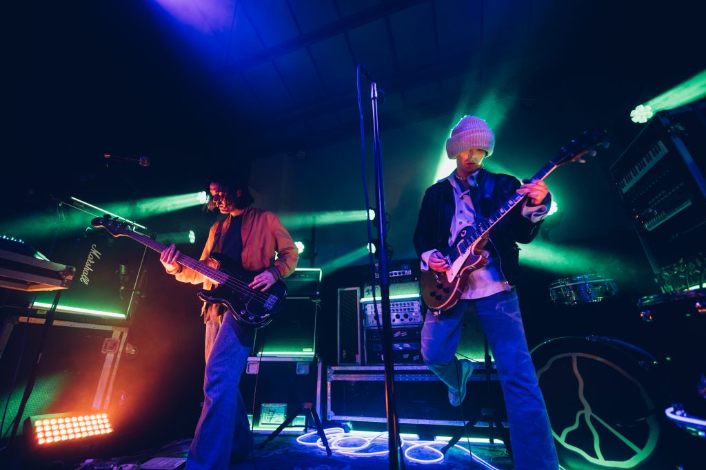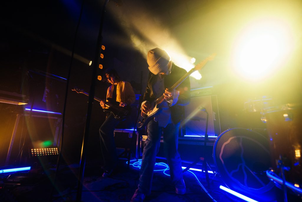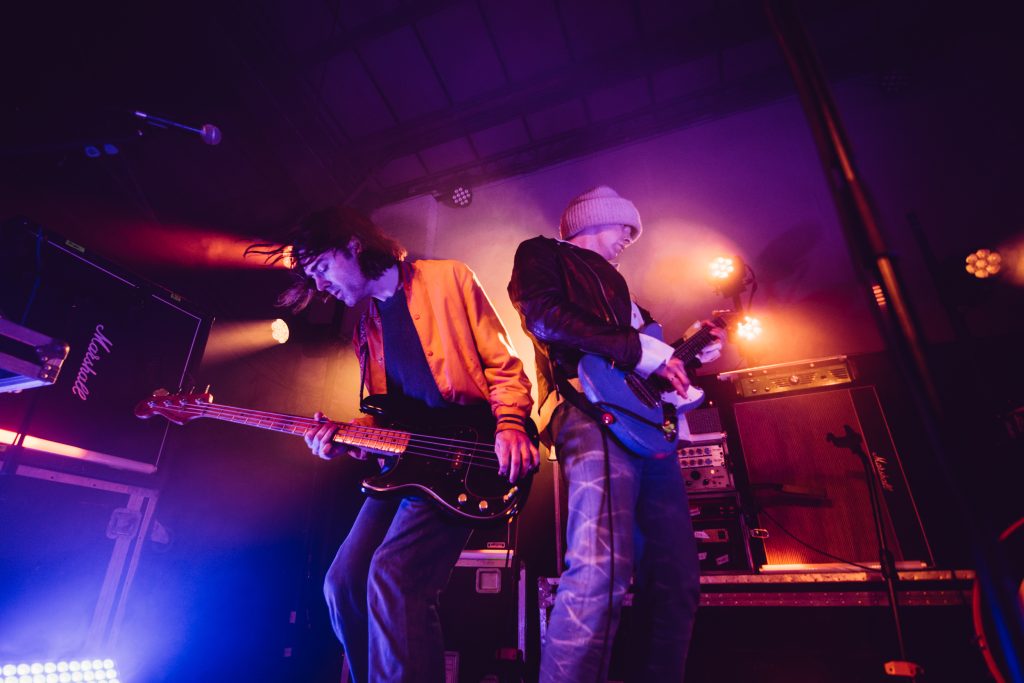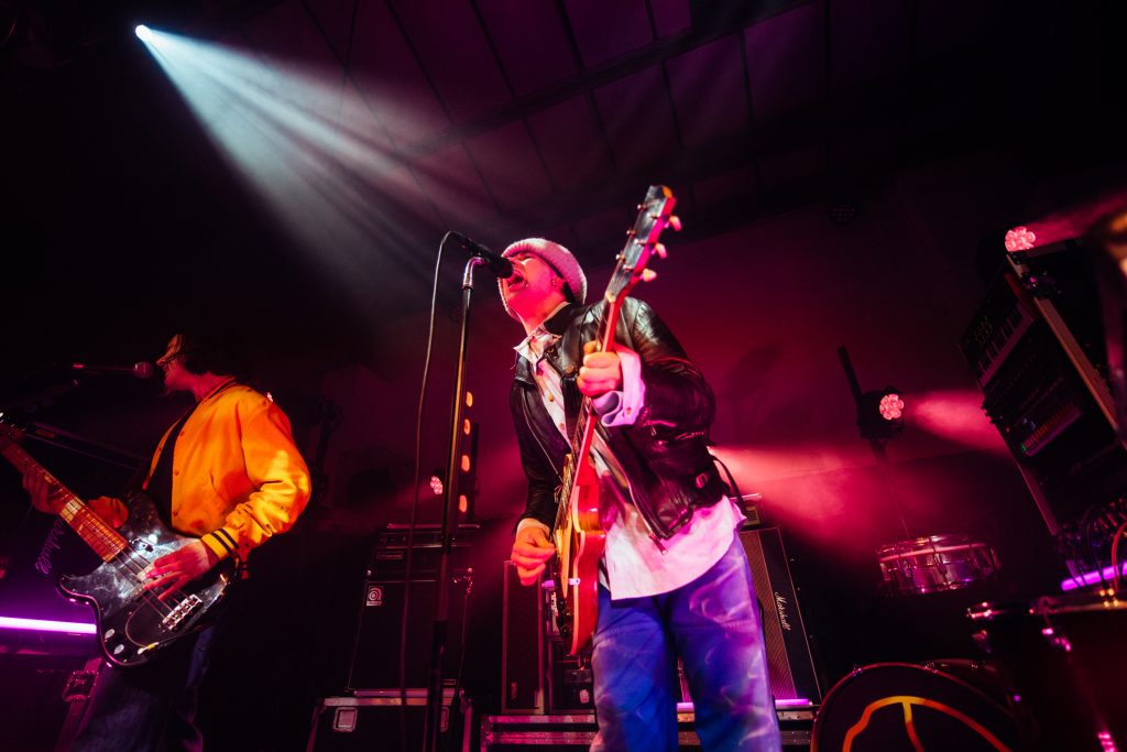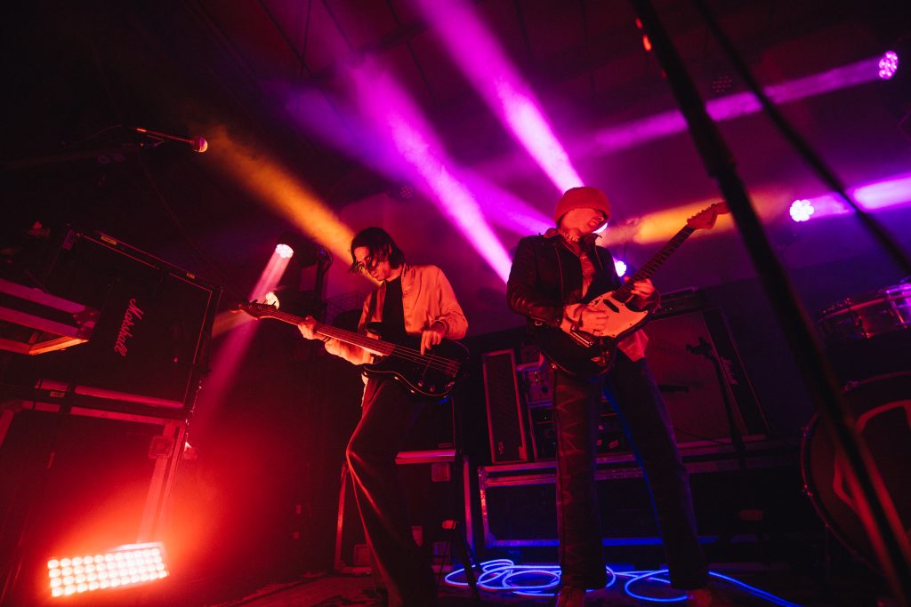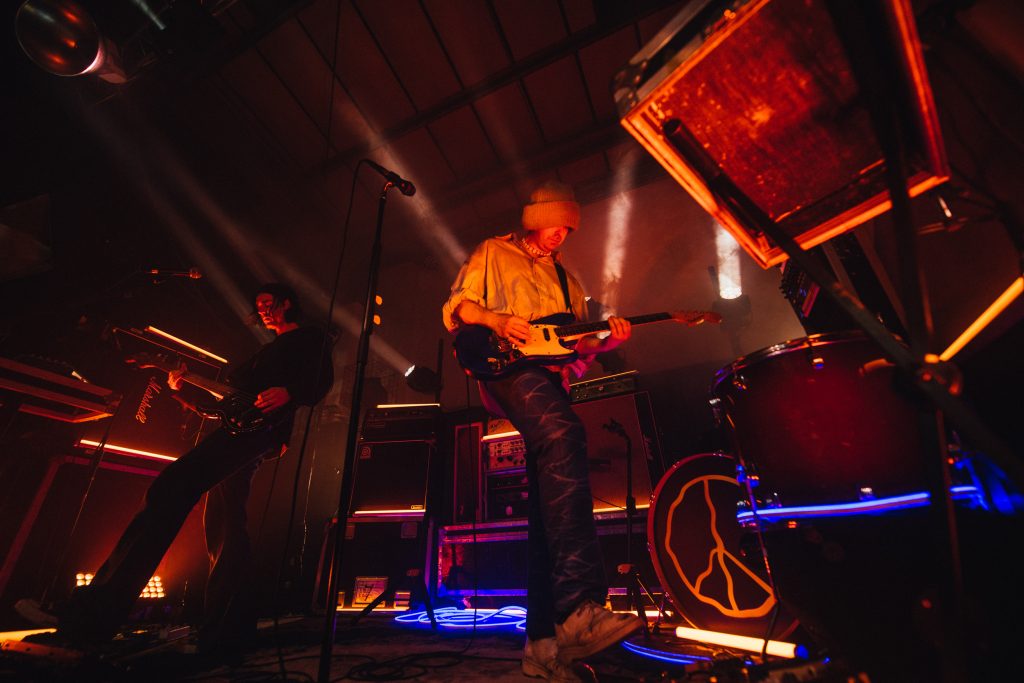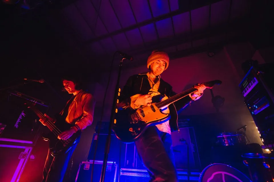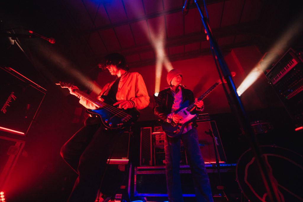Now a two-piece and with the sort of wall of technological equipment on-stage that would have NASA stumped, it's a surround-sound takeover that pushes everything Peace is to new levels at London's Colour Factory tonight. A warehouse-styled venue more akin to club nights and sweaty DJs, Peace in 2023 run with that and more for a celebratory, emotional night that's an undeniable statement of their feverish ambition.