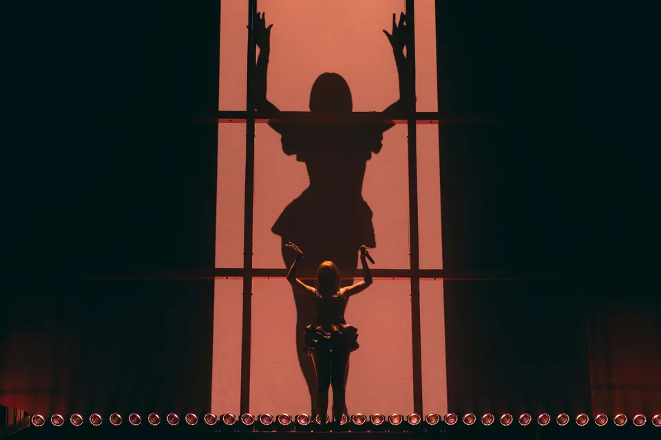 A spotlight reveals PinkPantheress’ silhouette behind a curtain as the viral opening line of ‘Illegal’ - “My name is Pink and I’m really glad to meet you” - plays and fans roar. When the curtain drops, we’re met with PinkPantheress The Pop Star.