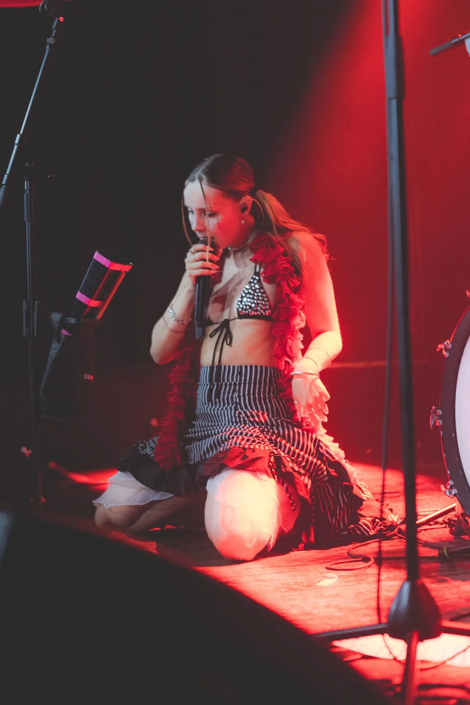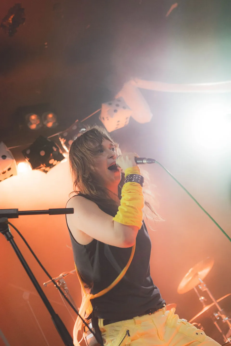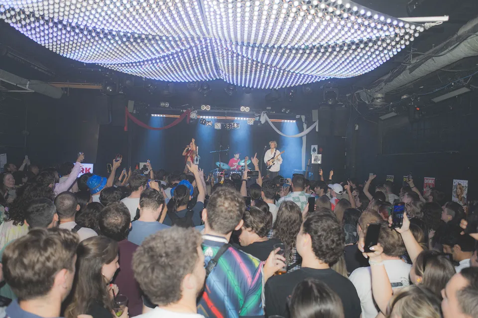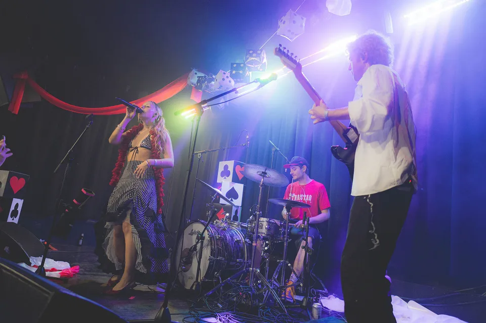 PUNCHBAG arrive on stage like a shaken bottle of fizzy pop cracked open. The result sprays across their quick-fire set that shows why being fun may make them one of the most exciting new bands around. 'I'm Not Your Punchbag' hits like a knockout blow and has Colours Hoxton moving as one to a band that dives headfirst into a glitter-neon ballpit. It's hyper and uncompromising in the greatest ways. Tonight feels like their most unstoppable statement - one that laughs in the face of any rulebook. 'Fuck It' is sung back in full volume as lead singer Clara Bach commands the room, whilst 'You Used To Be So Sexy' laughs and spits with equal passion. A neon explosion of energy, they make their ambition clear. It's a takeover or nothing.