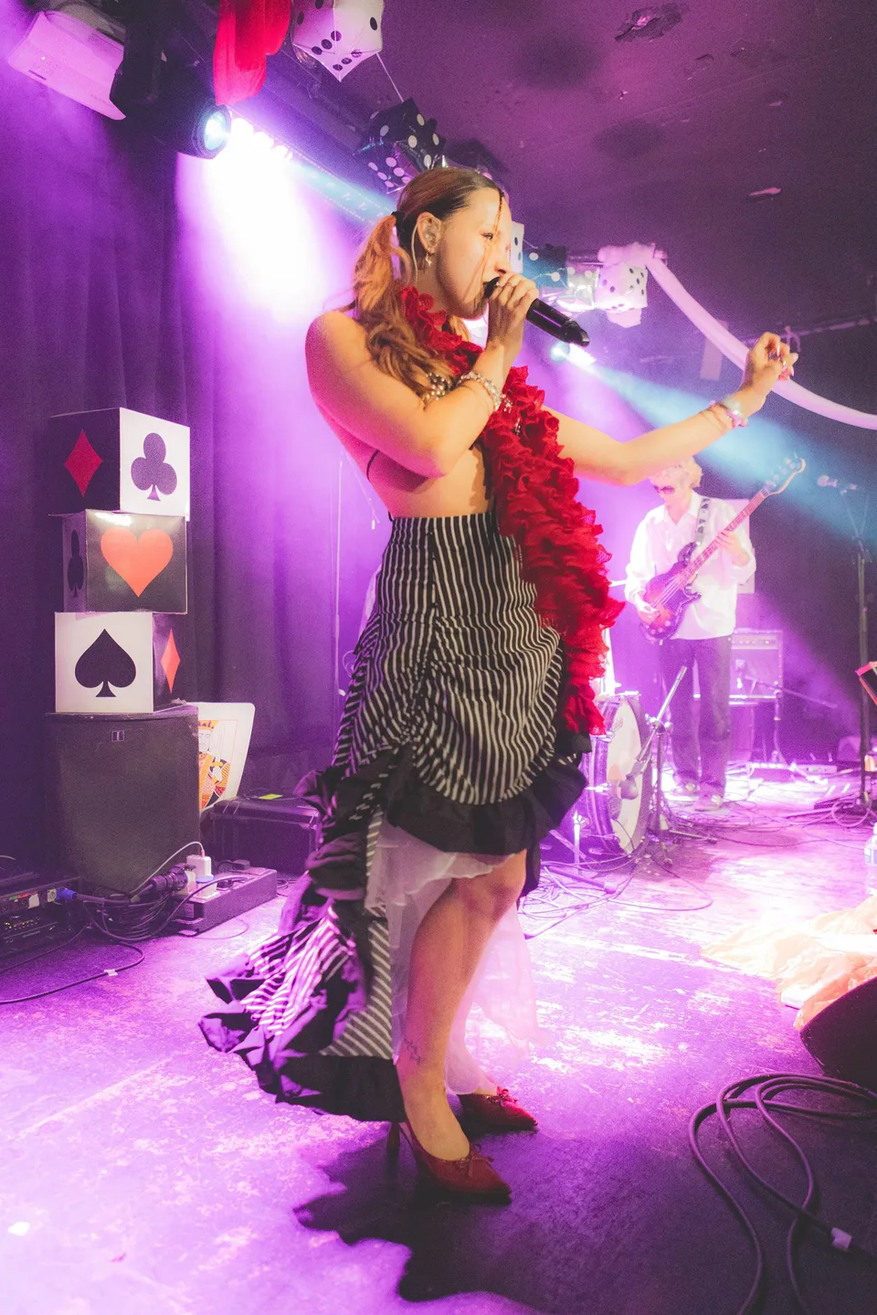 There's not a single space to move when piri & tommy take the stage. What follows is the feel-good pop-dance party of the year. Decked in ribbons, dice cubes and playing card blocks, the hands they pull are constant. Early runs through 'yoyo' see hands in the air miming the chorus, followed by a sizzling cover of dance classic 'LK (It Is The Way)' in homage to collaborator DJ Marky. Tonight, piri & tommy are back to seize their crown as the dance-pop breakthrough favourite. As a Thursday night vibe, it's immaculate. 'Dog', introduced as one of piri's favourite tracks, bounces with playful energy whilst 'updown' sees crowds letting loose. It's part late-night club and part jaw-dropping gig.