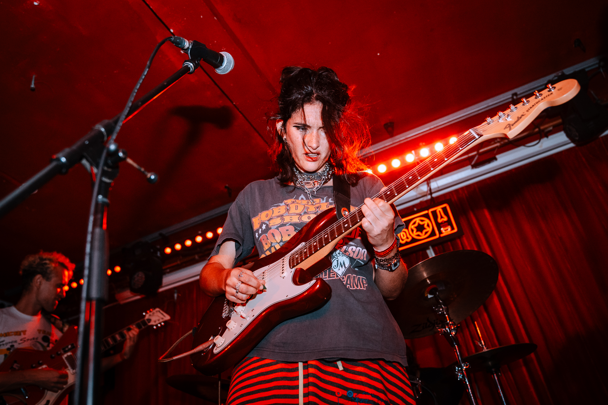 When a band have it, you just know. That’s the vibe when Prima Queen take to the stage, immediately wrapping Paper Dress Vintage into an all-encompassing ball of feel-good emotions. Swooning harmonies sit at the core of everything they do, effortlessly bouncing off each other and firmly in the driving seat from the very first note. Early cuts like ’Chew My Cheeks’ and ‘Back Row’ grab attention, and from there, Prima Queen revel in taking tonight to every destination in their stunning world. Walking that line between cinematic ambition and the feeling of being sat together in the rawest of intimate settings, the emotional punch they utilise at every step is a secret weapon that cuts above the rest.