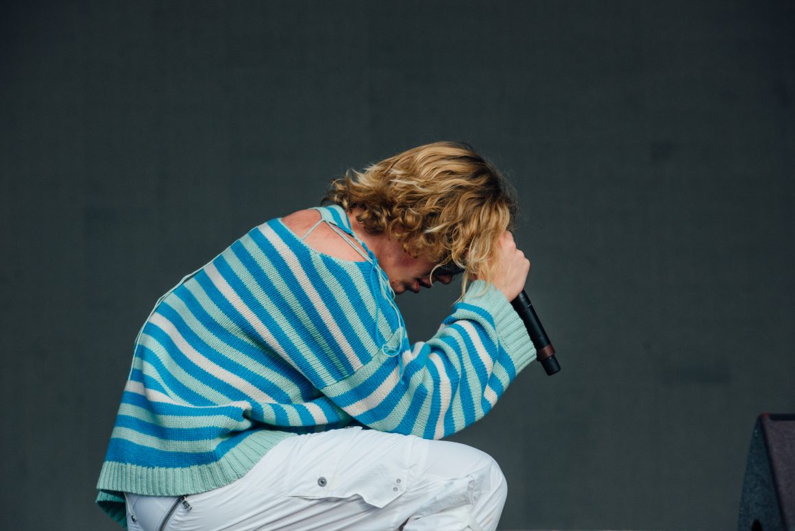 Not that he seems to mind. Fresh from a run of shows with Yungblud and with perhaps the most intense headline show in London this side of lockdown in his back pocket, he takes to the Dance Stage today with a certain swagger. The crowd is just as hyped. In the toilets before his set, a group of lads can be heard singing the refrain from ‘How Will I Rest In Peace If I’m Buried By A Highway’, and the cheers when he takes to the stage are the sort usually reserved for headliners.