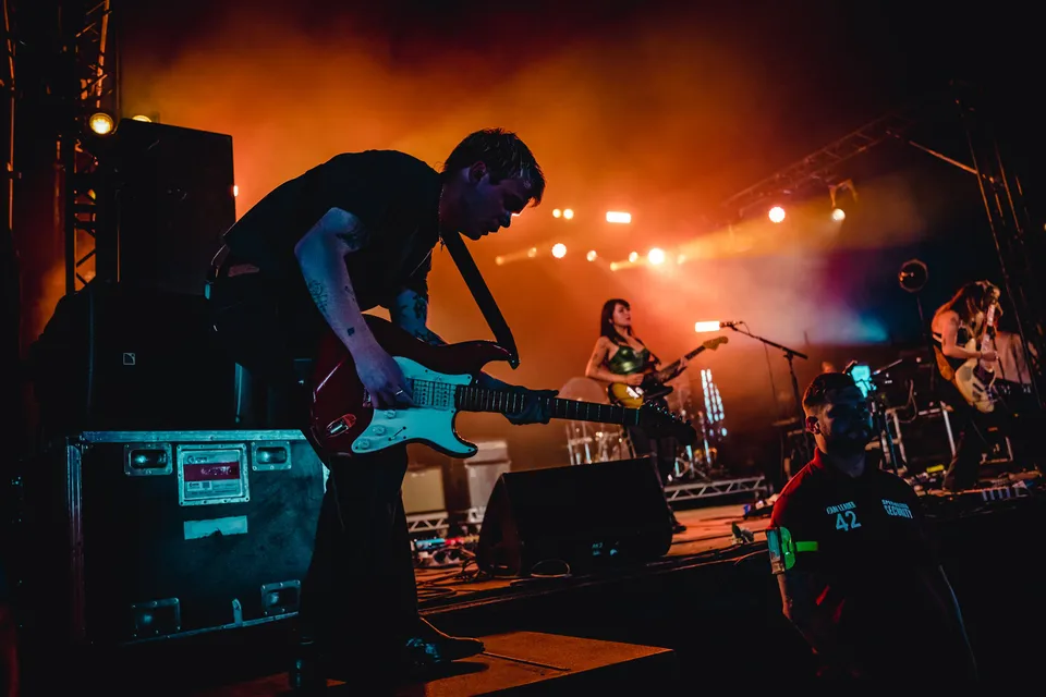 “We’ve been told we can’t hit tennis balls into the crowd, so we’ve got 200 tennis balls going spare if you want one.” – the words of Sean Murphy O’Neill, singer of Courting, about 20 minutes before the start of their show. Sport-related issues aside, it’s a confident set from the band, rattling through cuts from the new album to a massive reaction. ‘Tennis’ continues to be a massive hit, but ‘Jumper’, an experimental banger which borrows more from 100 gecs than the indie sphere, hits just as hard. A mid-afternoon slot at the Festival Republic stage can be a tough sell, but Courting have never been a band to shy away from a challenge. (JH)