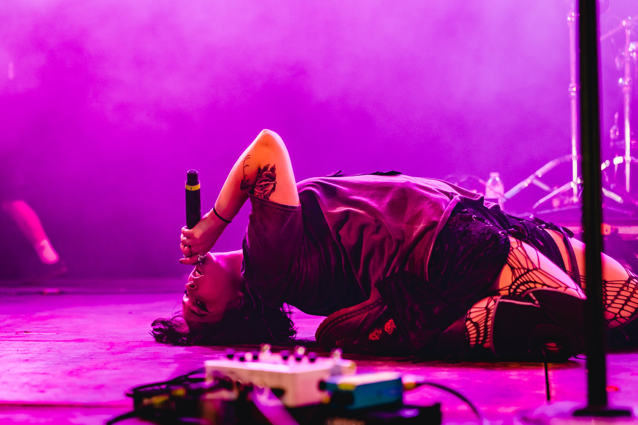 Their fans know it too. Girls in the front row are holding up “sign my tits” banners (including one fan who’d apparently flown from Canada on the off chance they would), and going absolutely feral when Ashnikko instructs them to have a therapeutic scream.