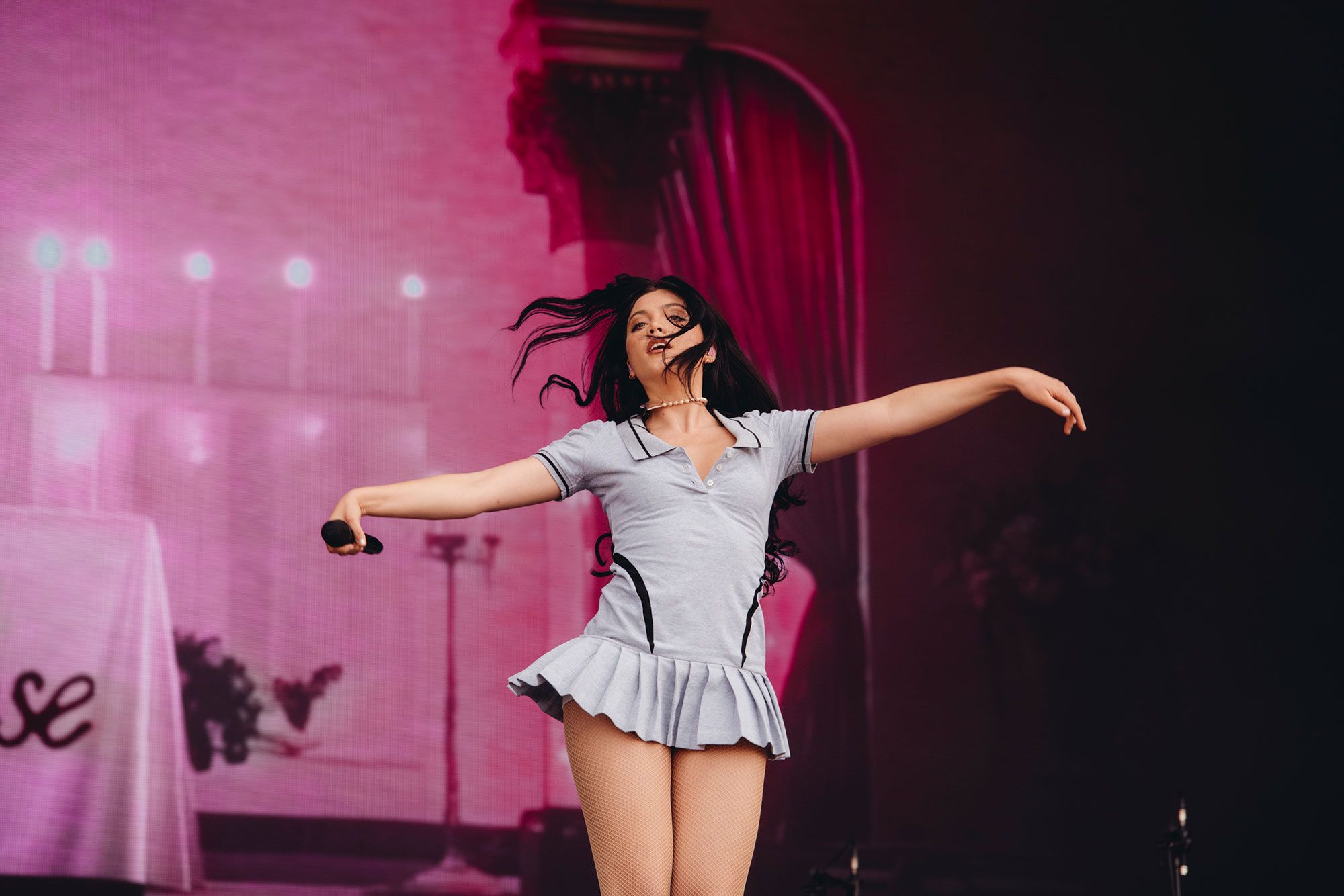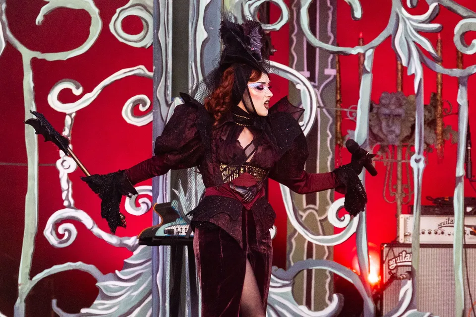 She sings the soaring 'Good Luck Babe!' into a wind machine and starts the show dressed like a Disney villain. "I want to teach you a dance," she grins before a giddy 'HOT TO GO!', clearly having fun with the whole thing. That playful spirit weaves its way through the show. The tender 'Coffee' sees her cuddling a goblin, and the "not overdramatic" line from opener 'Super Graphic Ultra Modern Girl' is delivered with the biggest of winks as fireworks erupt behind her.