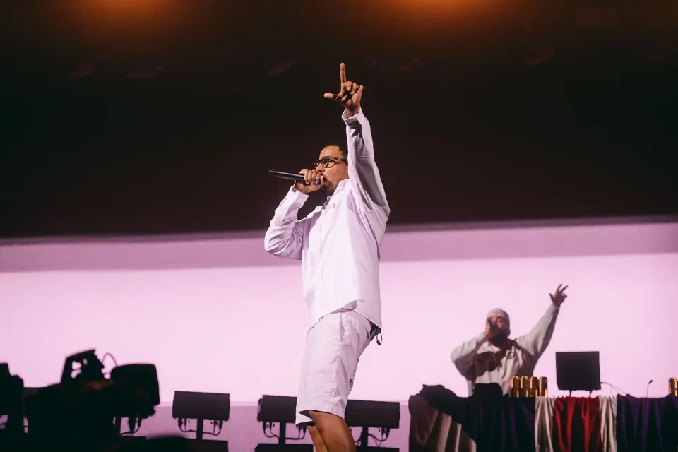 The slot directly after Chappell Roan isn't exactly an easy one to fill, but AJ Tracey is up to the task. He's on home turf here from the moment he walks on stage, demanding a level of energy that the crowd is only too willing to provide.