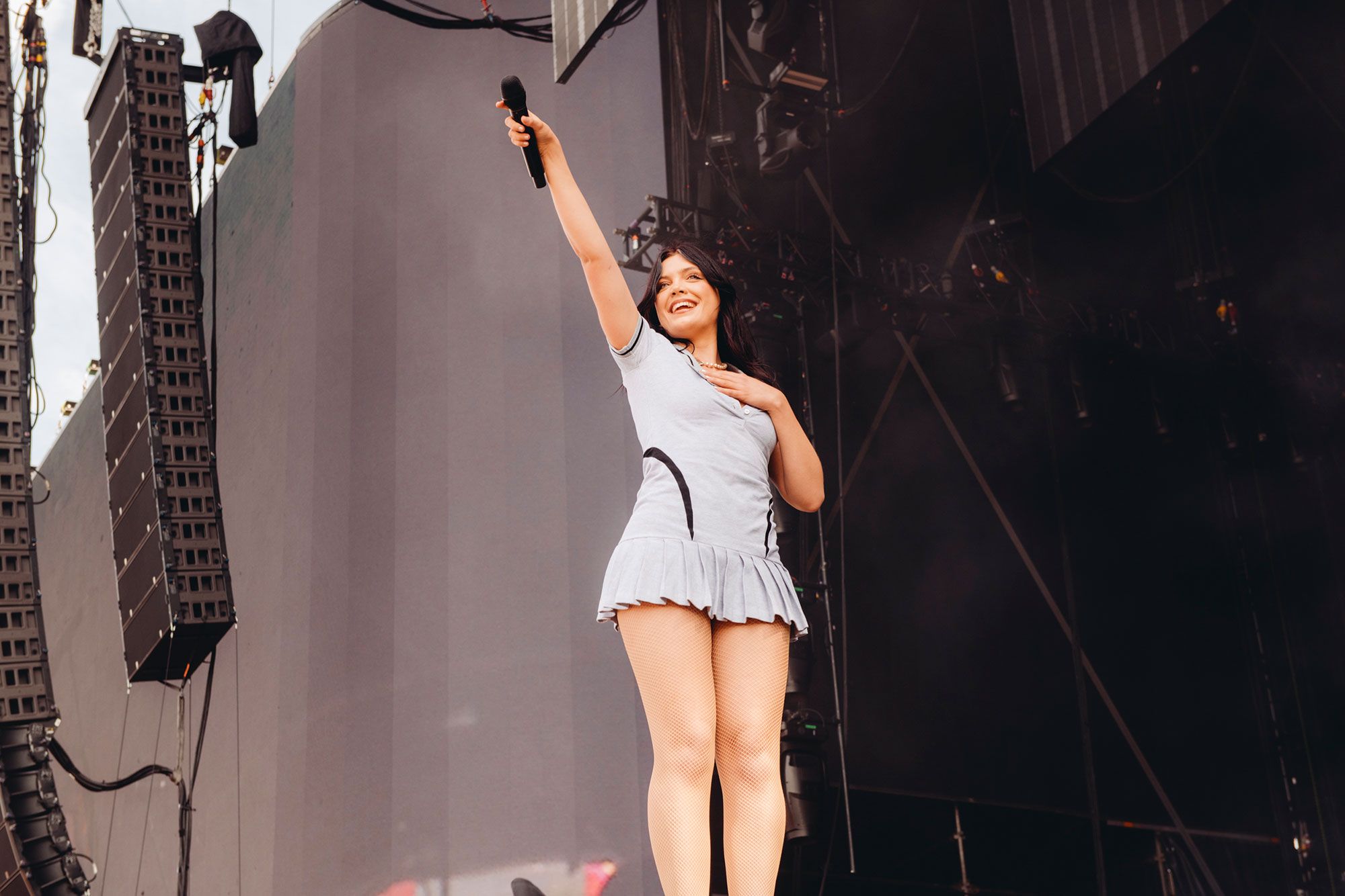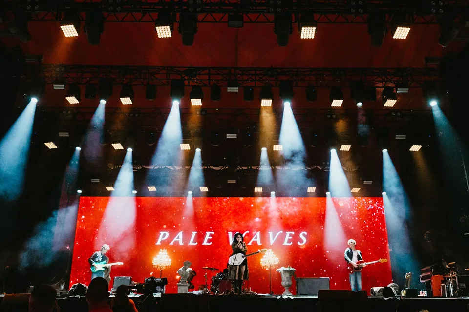 'Smitten' saw Pale Waves embrace their legacy after three very different chapters and basically create a greatest hits of everything the band do so well. They're also back on familiar ground today after playing Reading Festival "maybe four or five times before" but rather than playing things safe, the band have turned the Chevron stage into an ornate manor house, complete with marble busts and a twinkling chandelier.