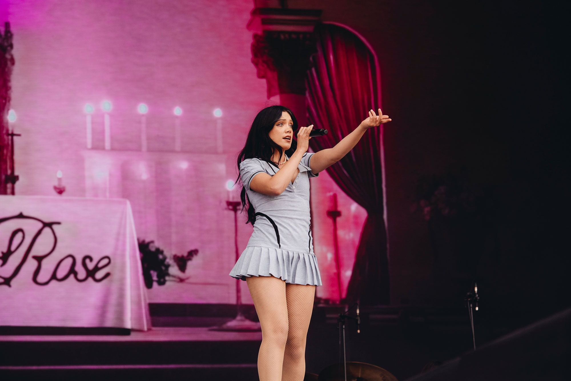 She's got a vaguely religious setup, a huge illuminated crucifix behind her and flowers arranged around pillars and beams, but she doesn't need it. She's aware she might be an unknown to much of the crowd gathering, but she works them regardless. Dropping material at a rate that'd make Taylor Swift jealous, her set has been rapidly adapting as the year's gone on, this time incorporating much of latest EP 'Voyeur'. New tracks like 'That Could Be Me' pack as much of a punch as opener 'IKYK', while 'oh my', fast becoming her signature track, is a clear highlight.
