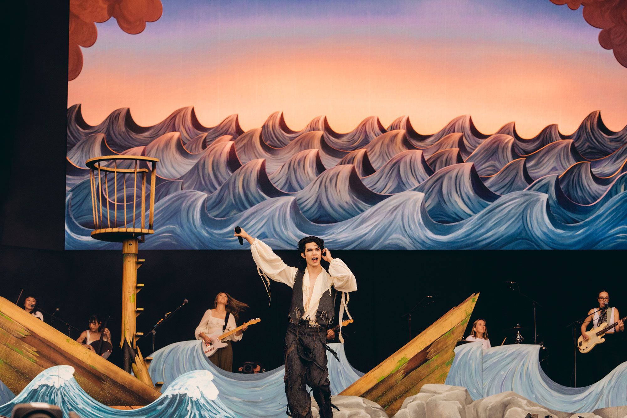 Pulling out all the stops, Conan brings with him no less than a whole shipwreck, a string section and a host of new songs with him. Doubling down on the nautical theme, he’s dressed as a pirate (down in the front, fans don sailor outfits to match) as he opens with new track ‘This Song’.