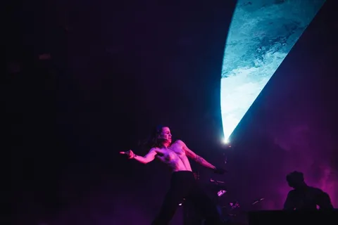 It feels like Rina Sawayama is on another level to the rest of the festival entirely, though. Her impassioned, visceral speech about racism and control will rightly be the biggest takeaway from her 60-minute set, but let's not gloss over just how phenomenal the entire show is. From the impressive boxing ring-meets-industrial-rave stage set-up through the electrifying dance routines, the various costume changes and the weaving arching narrative, Rina's set is theatrical, flawless and fucking stunning. It needed to be to match the commanding back catalogue Rina's built over her past two albums. From the soaring 'Hold The Girl' through the hammering 'Dynasty' to the sheer ferocity of 'STFU!' and a cover of Limp Bizkit's 'Break Stuff', every song feels like a moment, while a giddy run of 'Beg For You', 'Comme des garçons (Like the Boys)' and 'XS' is untouchable. Despite the scale of the show, Rina doesn't get lost in the bombast either, with a smirking onstage costume change allowing her to gently mock the crowd for being "too quiet" while the closing 'This Hell' is transformed into a bellowing call-and-response. It's a slay of the highest possible level.
