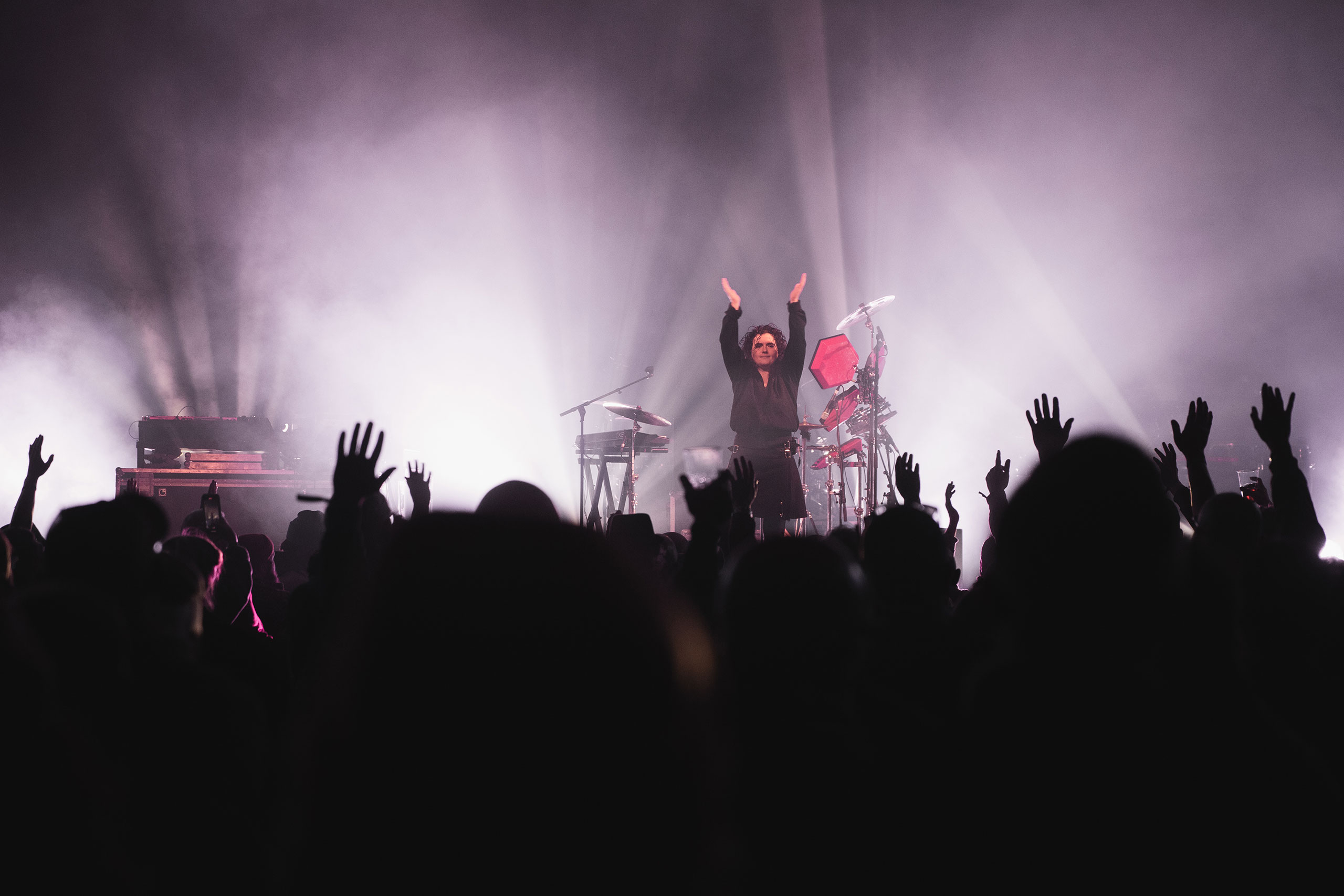 Full up from a bite at the buffet, we head back into the cold for more live music. And who better to usher in the apocalyptic evening than Hamish Hawk, with sleek new (new, new, new) wave. The sinister undertones of new album 'A Firmer Hand' play well here – the stalking bassline of 'Machiavelli's Room' and the swagger of 'Big Cat Tattoos' – but it's the country-tinged 'Rests & Veneers', off 2023's 'Angel Numbers' that's the standout, cutting through like a burst of citrus in your coca cola.