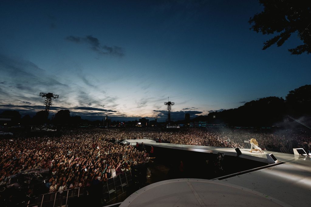 These BST Hyde Park headlines feel like a bit of a victory lap for Sabrina. While her Powerpop Girl counterparts Charli xcx and Chappell Roan’s summer 2024 dominance was ushered in by their festival performances, Carpenter’s was more algorithmically-fuelled, her household-name status quickly sticking as she held onto the number one spot in the UK for almost half of last year with three different hits. Her tour in support of ‘Short n’ Sweet’ hit these shores as recently as March, seeing Sabrina level up from two nights at The O2 at 20,000 punters each in the spring, to two nights at Hyde Park, flogging a whopping 65,000 tickets each day, a fact she recites on stage with bewilderment.