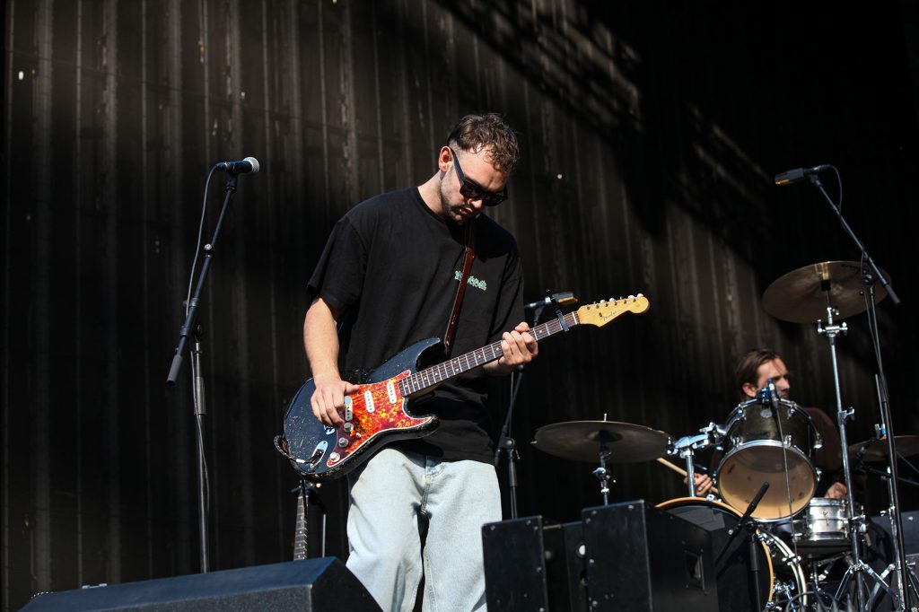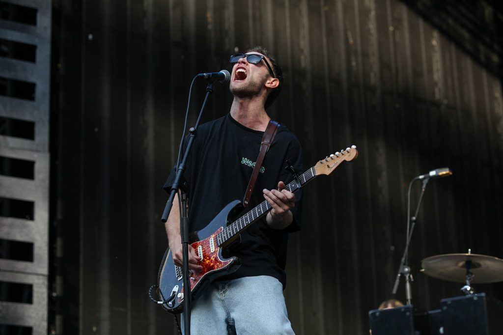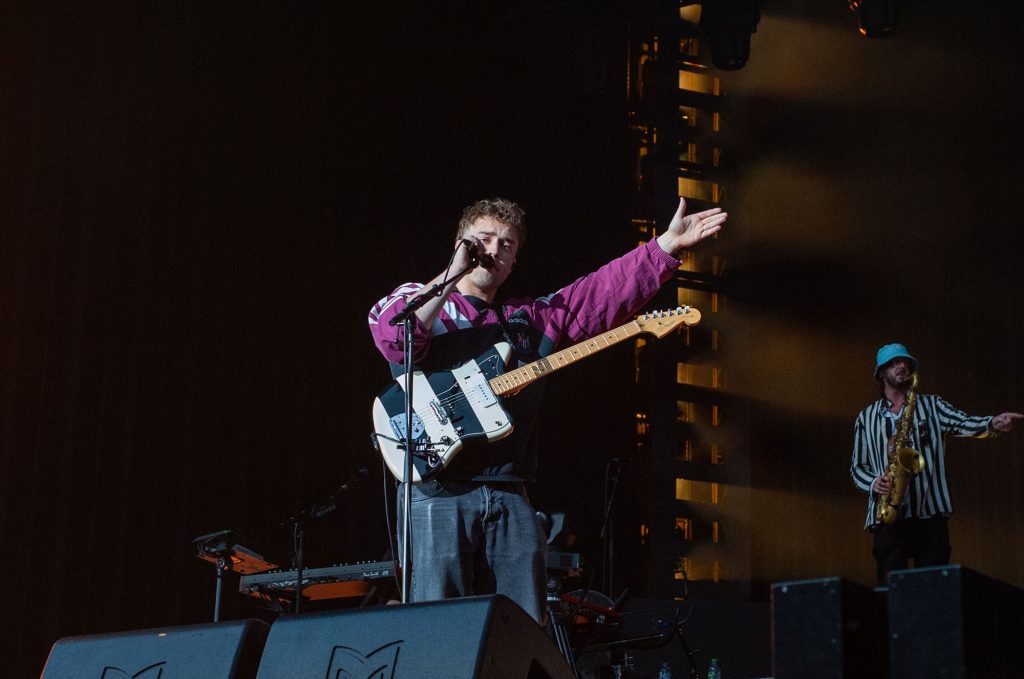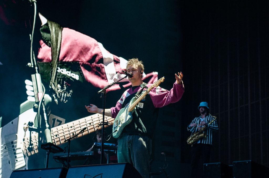 'The Borders' demonstrates where these Americana-songwriter influences began to impact his output but is quickly contrasted by the jarring ferocity of 'Spice' and 'Howdon Aldi Death Queue'; the potency of these now-established moshpit moments is drastically amplified as a huge standing crowd feels the searing heat of rising flames and is visually bombarded with a deliberately disorienting flurry of colour.
