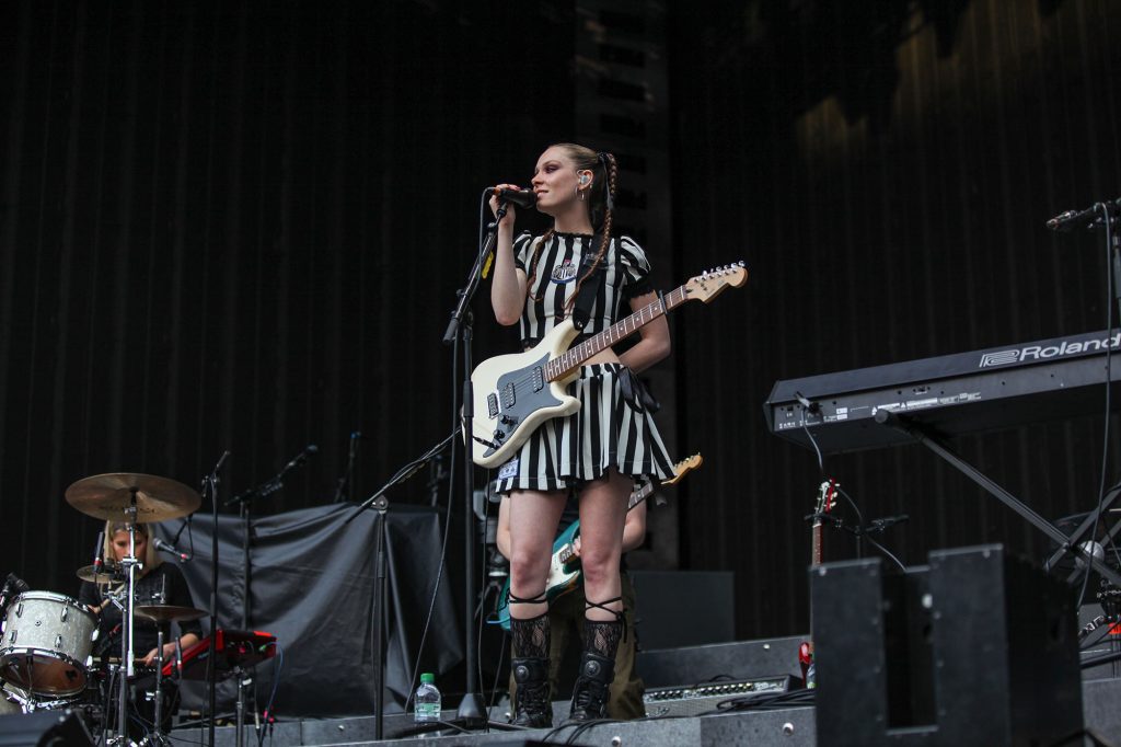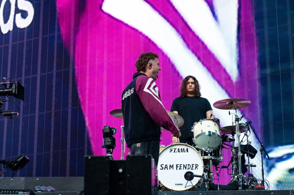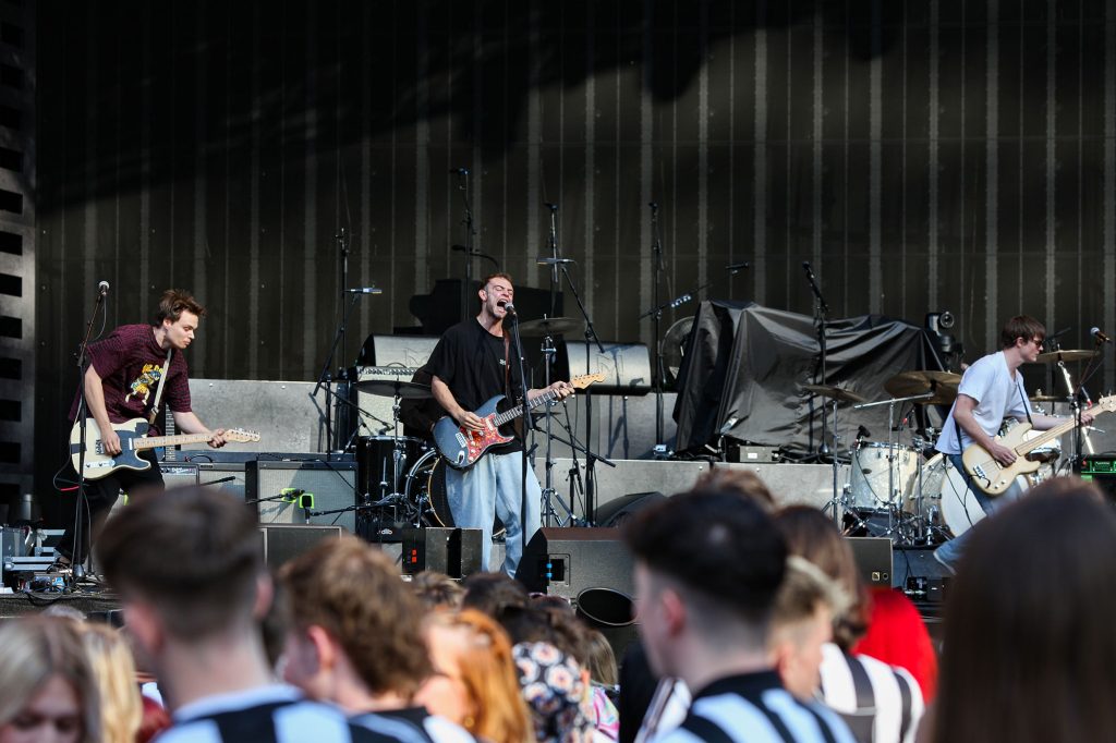 Making their way into the stadium, attendees witness the noodling spirit of newcomer Ernie, the raw rock energy of rising stars Wunderhorse, and delicate but anthemic, heartbreaking but warm songs from Holly Humberstone. It's all building towards one thing, and as the minutes pass by, a quiet tension seeps into the otherwise lively venue.