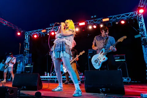 “It’s a dream to be standing here, with my best friends,” starts Kat, taking a break from churning the crowd up to share a sincere moment of gratitude. “I don’t know who came here today to break a sweat and do some dancing but ‘Psychic Dance Routine’ is your chance,” she continues. The title track to the band’s latest EP sees Scowl dial into the melody that’s always been a vital part of their sound, and push it through a fearless, colourful filter. It doesn’t mean that the circle pits are any less intense, only that the people who really have no idea who Scowl are have something to latch onto. And it isn’t long before some of them are in the middle of the circle pit, either.