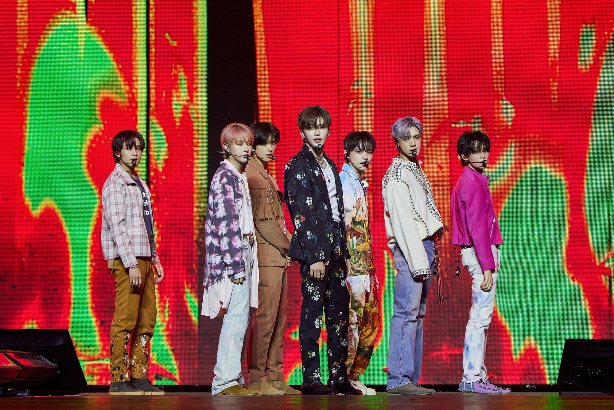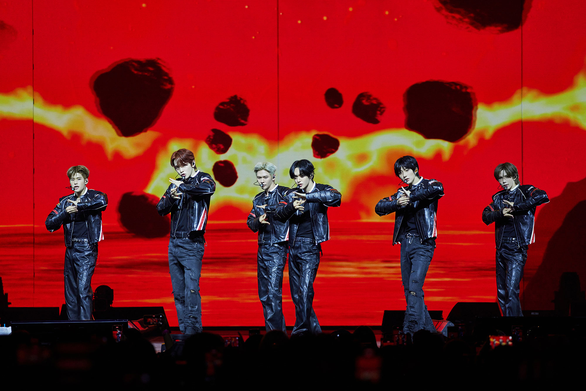 Then it’s onto Hearts2Hearts, the company’s latest girl group who perform their peppy, sugary singles ‘The Chase’ and ‘Butterflies’, then the British boy band dearALICE, who underwent an intense 100-day training regime with SM before launching last year. Both acts give it their all, but putting the newest first sort of ends up feeling like they’re the support slot before the big show.