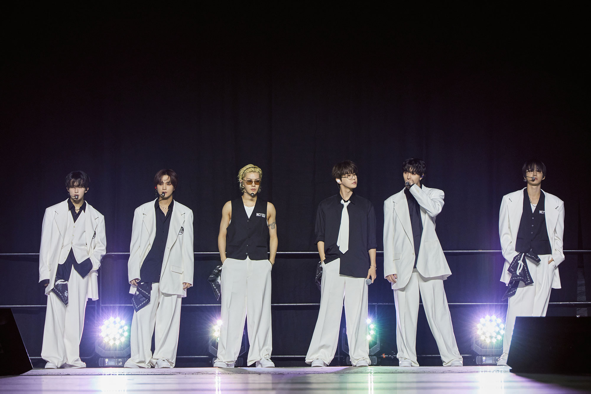 While the colour green may have belonged to a certain bratty pop star for the last year, it’s been the representative colour of a K-pop mega-group for much longer. So as Worthy Farm basks in green this Saturday night, so does The O2 because there’s no escaping what this is: an NCT show. The generation-spanning boy group (whose 25 members have the oldest at 30 and the youngest at 17) make up a considerable portion of the lineup, with four sub-units taking to the stage to perform their respective tracks. NCT WISH, the most recent group, go first; like RIIZE, they’re slick, tight, and keen to prove their worth, their adoption into the NCT family keeping them from feeling too new.