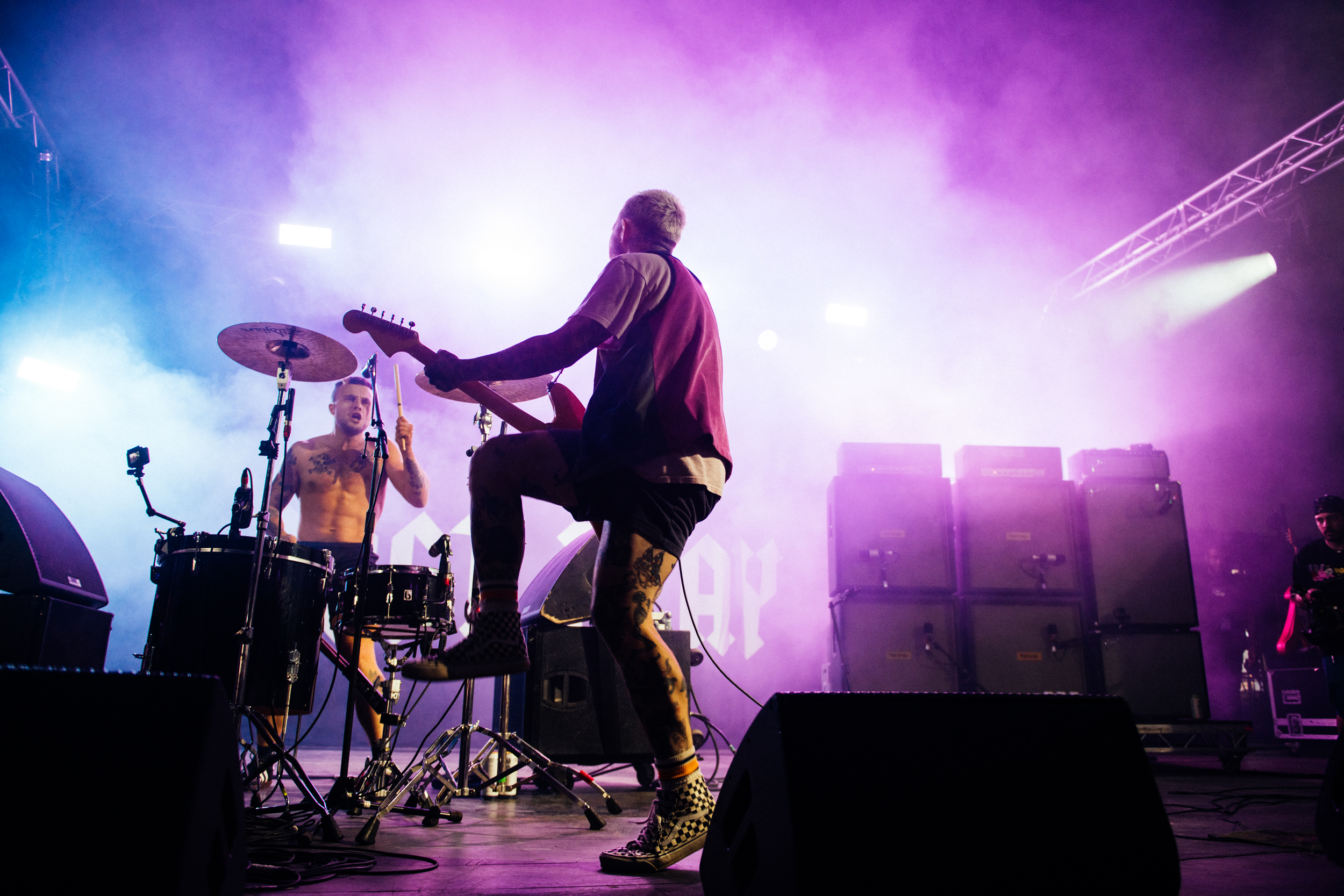 Foundational track ‘Where’s Your Car Debbie’ gets an airing within the first ten minutes, a concrete statement that the name may have changed, but the bangers aren’t going anywhere. Any worries about a band trapped in the past are unfounded, though. New single ‘Punk’s Dead’ gets an absolutely huge response, with mosh pits, people on shoulders, and even a couple of people on shoulders in mosh pits.