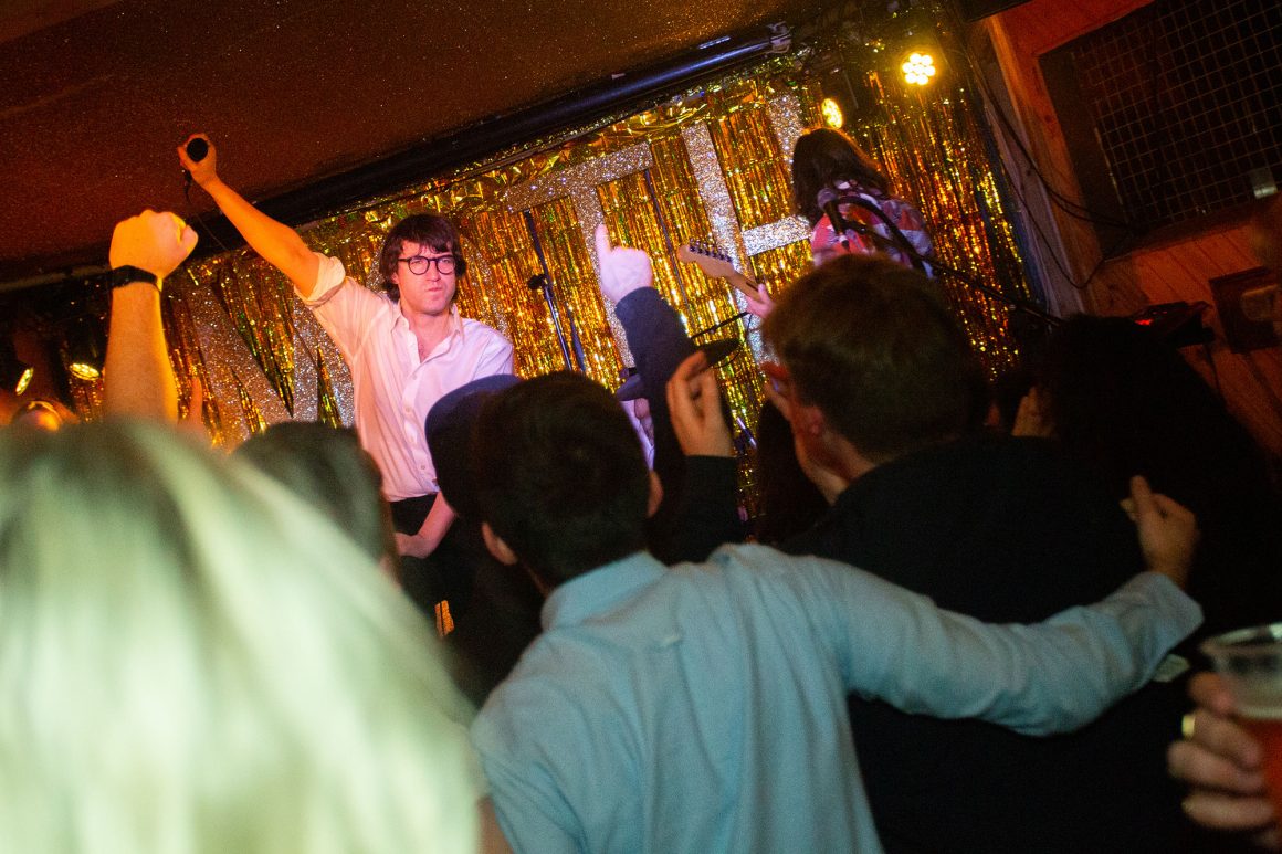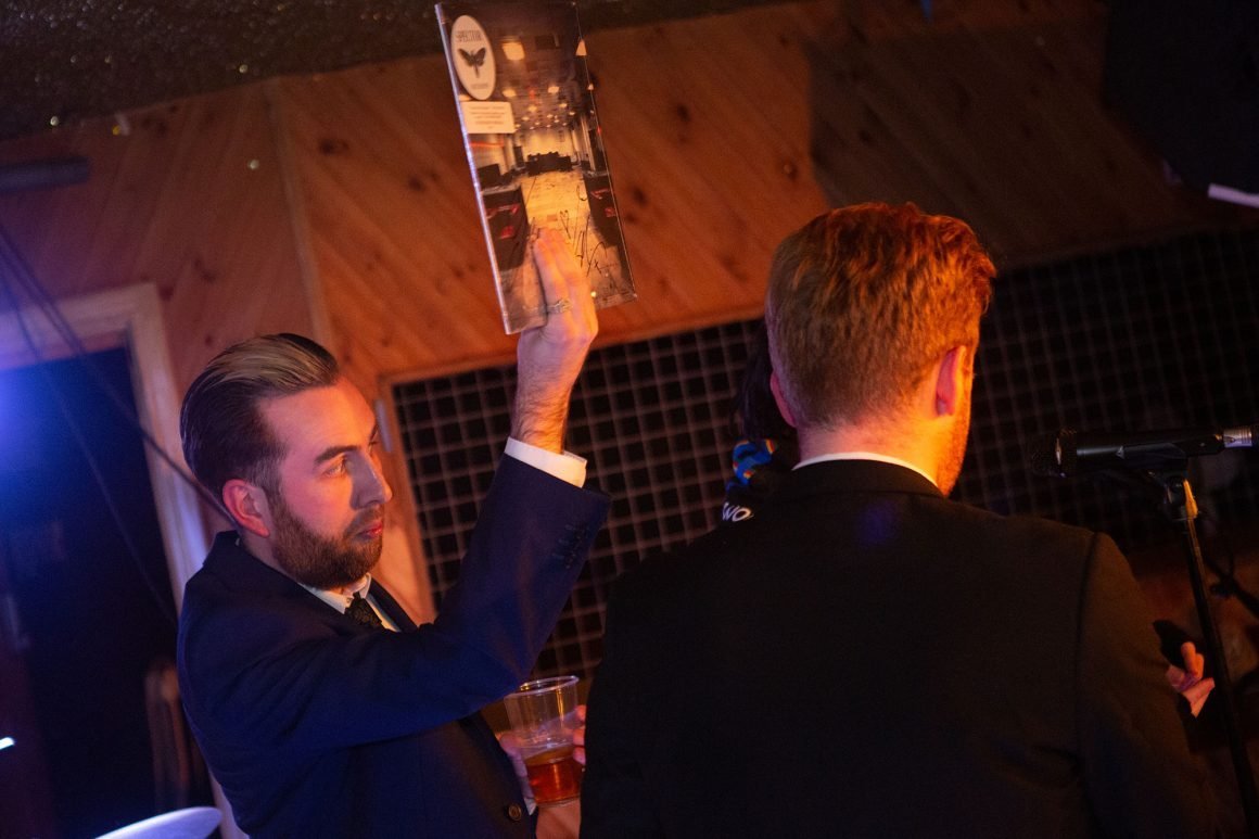 Speaking of which, the raffle, hosted by our very own Down With Boring co-hosts Jake Hawkes and Jamie Muir, giving away a host of fine prizes including that all-important gammon. Now, we're not usually ones to say that things may have gone wrong here, but... things may have gone wrong here. Whether most of the raffle tickets that were being drawn from our highly technical 'pot' had actually been taken from the wrong book, we'll just have to wait for an independent investigation to find out. Even though the gammon goes to a worthy home (a blessing), Spector receive the most rapturous response of their lives when they eventually take to the stage for a triumphant run through 'Now Or Whenever' and beyond.